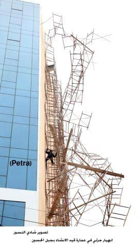 انهيار ثلاث سقالات معدنية بعمارة بجبل الحسين .. صور