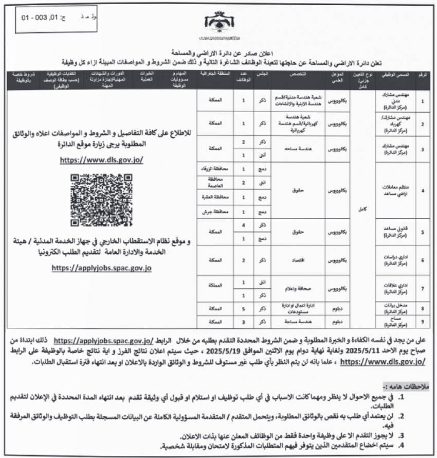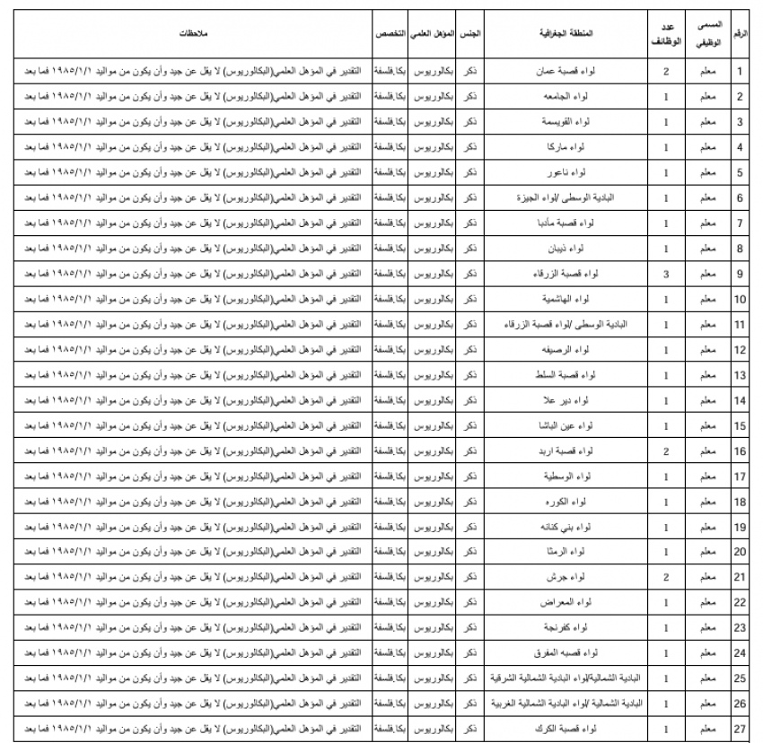 أعلنت عدد من المؤسسات الرسمية، اليوم الخميس، عن حاجتها لتعبئة وظائف شاغرة، فيما دعت أخرى عددًا من المرشحين لإجراء المقابلات الشخصية.