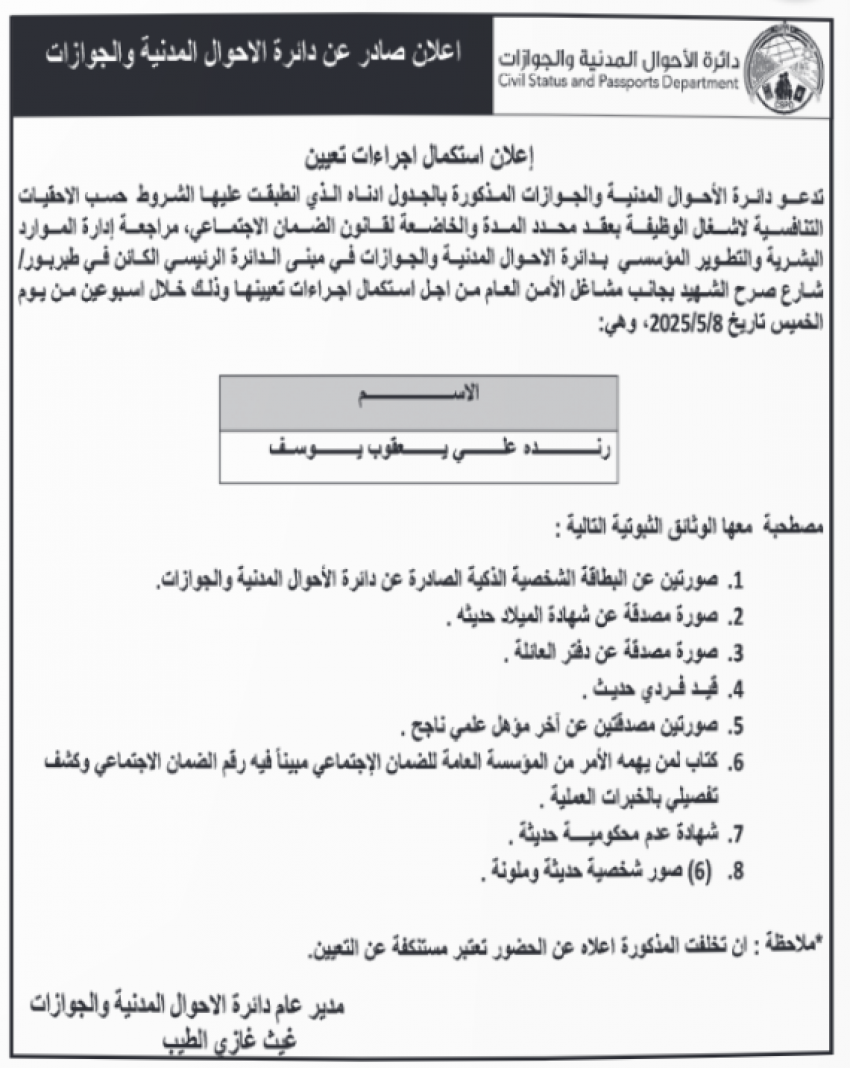مدعوون للتعيين ووظائف شاغرة- اسماء وتفاصيل