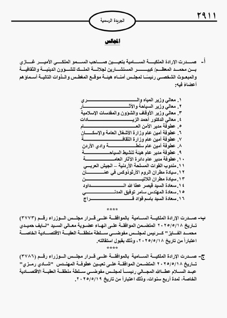 كما صدرت إرادتان بشادي المجالي ونايف حميدي الفايز.