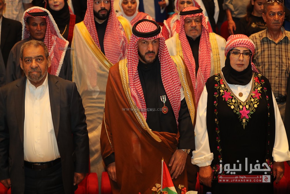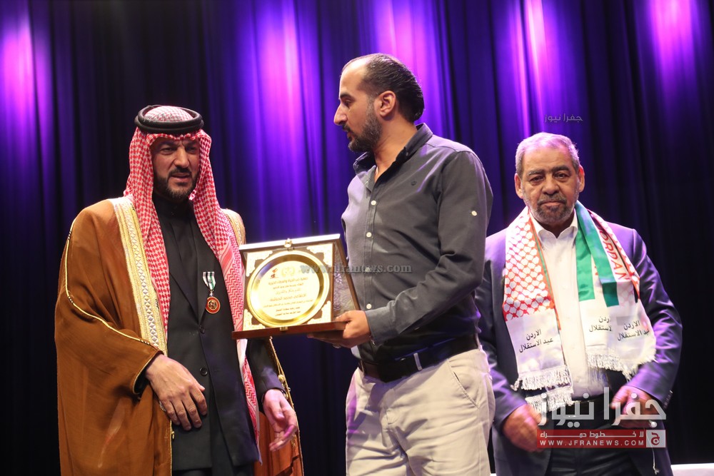 وشارك في المهرجان الاحتفالي الوطني الذي أقيم في مركز الحسين الثقافي، فرقة أمانة العاصمة، وكوكبة من الشعراء والفنانين، بإدارة الشاعر محمد الأغوات.