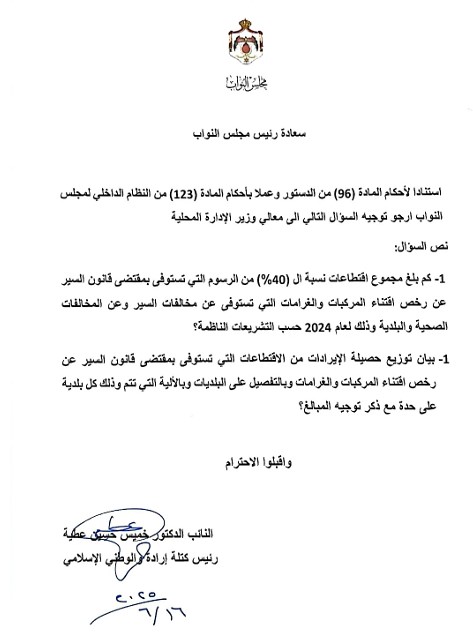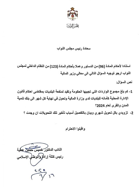 وجه النائب الدكتور خميس عطية رئيس كتلة إرادة والوطني الإسلامي، سؤالًا نيابيًا لوزير الإدارة المحلية وليد المصري، عن حجم الاقتطاعات من الرسوم والضرائب والبدالات التي تحول للبلديات.
