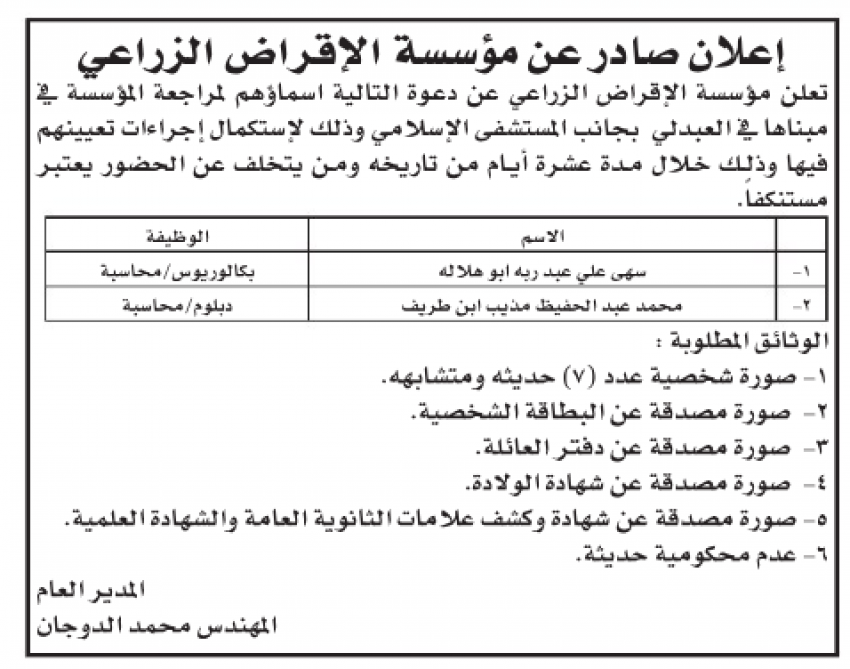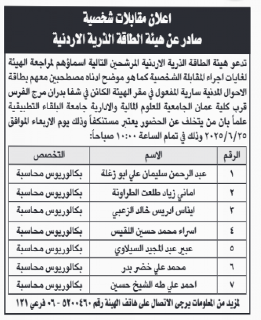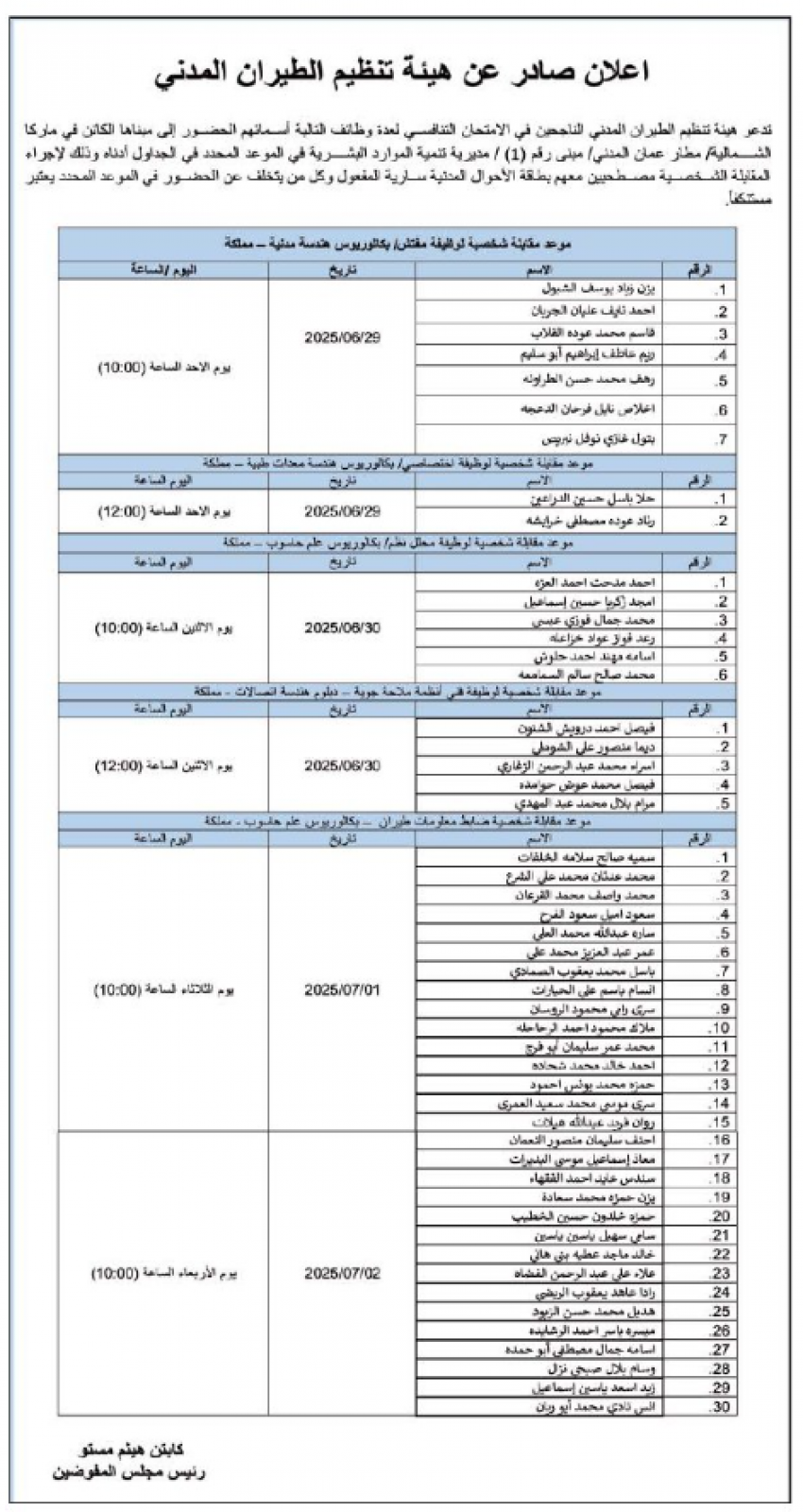 دعت عدد من الوزارات والمؤسسات الحكومية،الخميس، مرشحين لاجراء المقابلات الشخصية لغاية استكمال اجراءات التعيين، وتاليا التفاصيل: