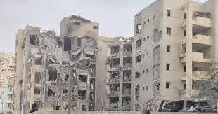وأظهرت عدة صور ومقاطع مباني سكنية مدمرة وأضرارا كبيرة لحقت بالمركبات ووسائل النقل في عدة أحياء بالمدينة فجر اليوم.
