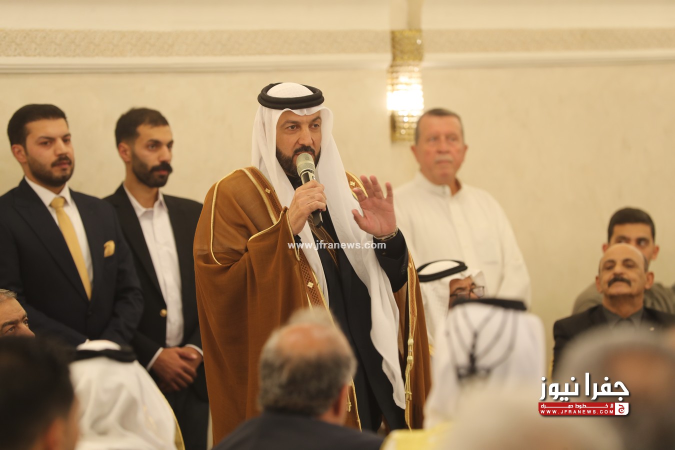 حيث تراس الجاهة الكريمة بالطلب عن عشيرة الشرايعة الشيخ عبد الكريم سلامة الحويان واجاب الطلب بالموافقة والقبول الشيخ محمود شراري كريم العساف. بحضور غفير من أصحاب السعاده والعطوفة وشيوخ و وجهاء وجمع غفير من الأقارب و الأصدقاء.