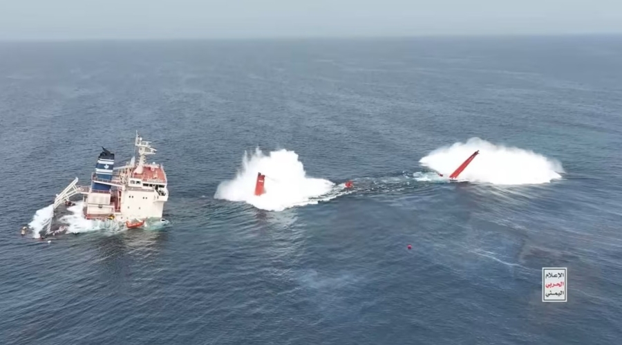 وتداول نشطاء مقطع الفيديو الذي نشرته قناة المسيرة التابعة للحوثيين، والذي يعتبر أول هجوم على الشحن التجاري في البحر الأحمر والمنطقة هذا العام.
