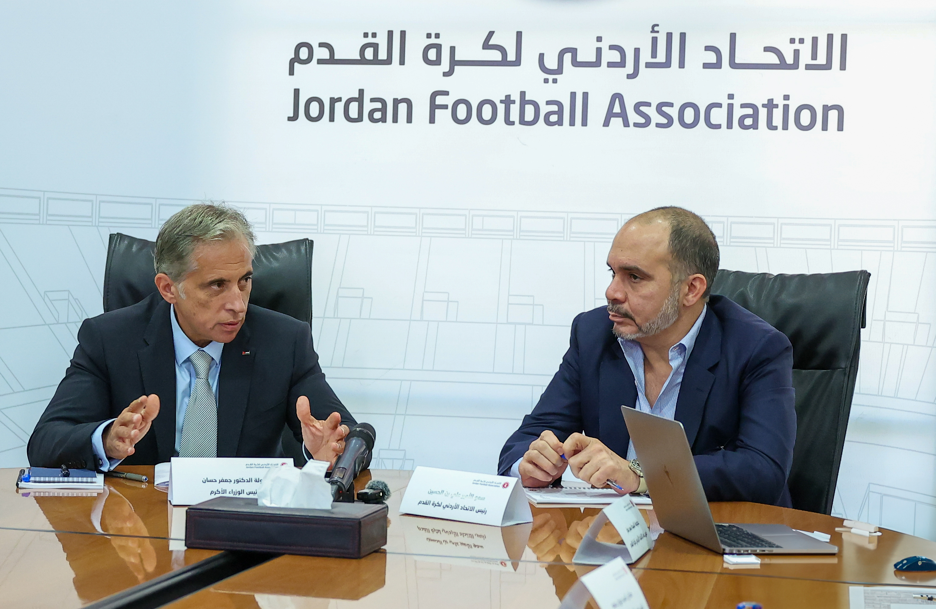 ترأس سموّ الأمير علي بن الحسين، رئيس الاتحاد الأردني لكرة القدم، اليوم الأربعاء اجتماعاً للاتحاد، استضاف فيه رئيس الوزراء الدكتور جعفر حسَّان، جرى خلاله التأكيد على أهميَّة تكاتف الجهود للبناء على الإنجاز التاريخي الذي حققه المنتخب الوطني لكرة القدم بتأهله لكأس العالم، واستثماره كقصَّة نجاح لتحفيز الشَّباب واستدامة هذه الإنجازات.