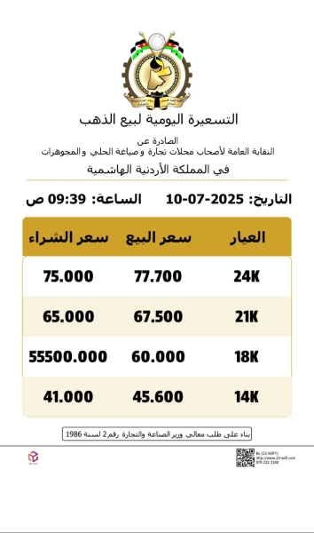 ارتفعت أسعار الذهب في السوق المحلية اليوم الخميس، 80 قرشا وفقا للتسعيرة اليومية الصادرة عن نقابة الحلي والمجوهرات.