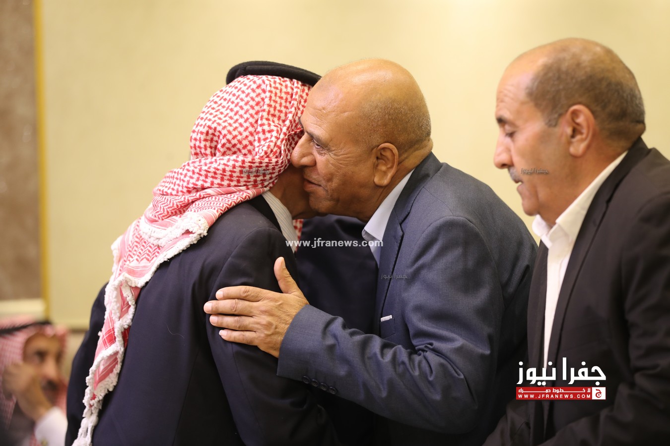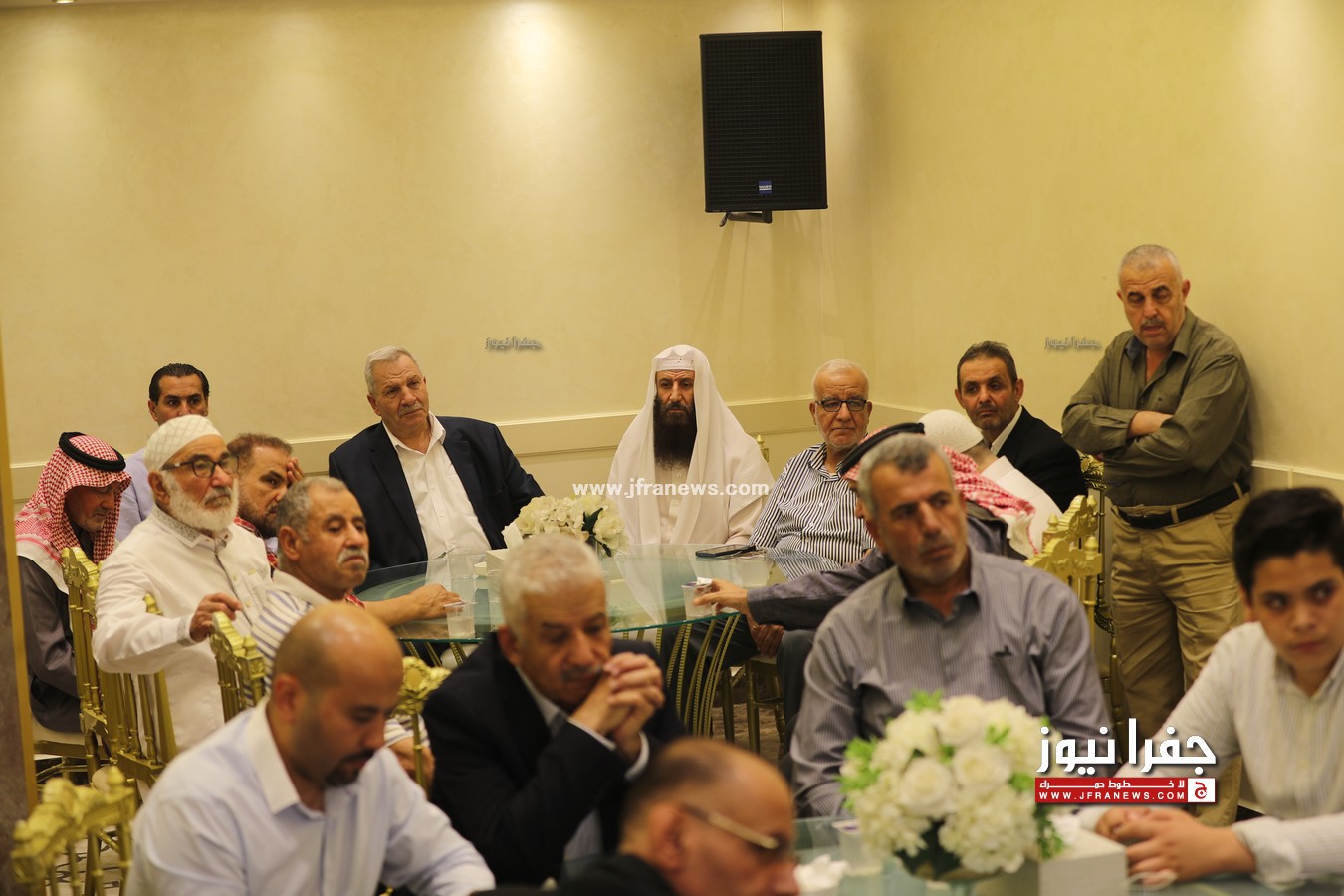 حيث تراس الجاهة الكريمة بالطلب عن عشيرة الجربان الشيخ عبد الكريم سلامة الحويان وأجاب الطلب بالموافقة والقبول الشيخ محمد يوسف السنجلاوي. بحضور غفير من أصحاب السعادة والعطوفة وشيوخ و وجهاء وجمع غفير من الأقارب و الأصدقاء التي أقيمت في نادي القضاة النظاميين.