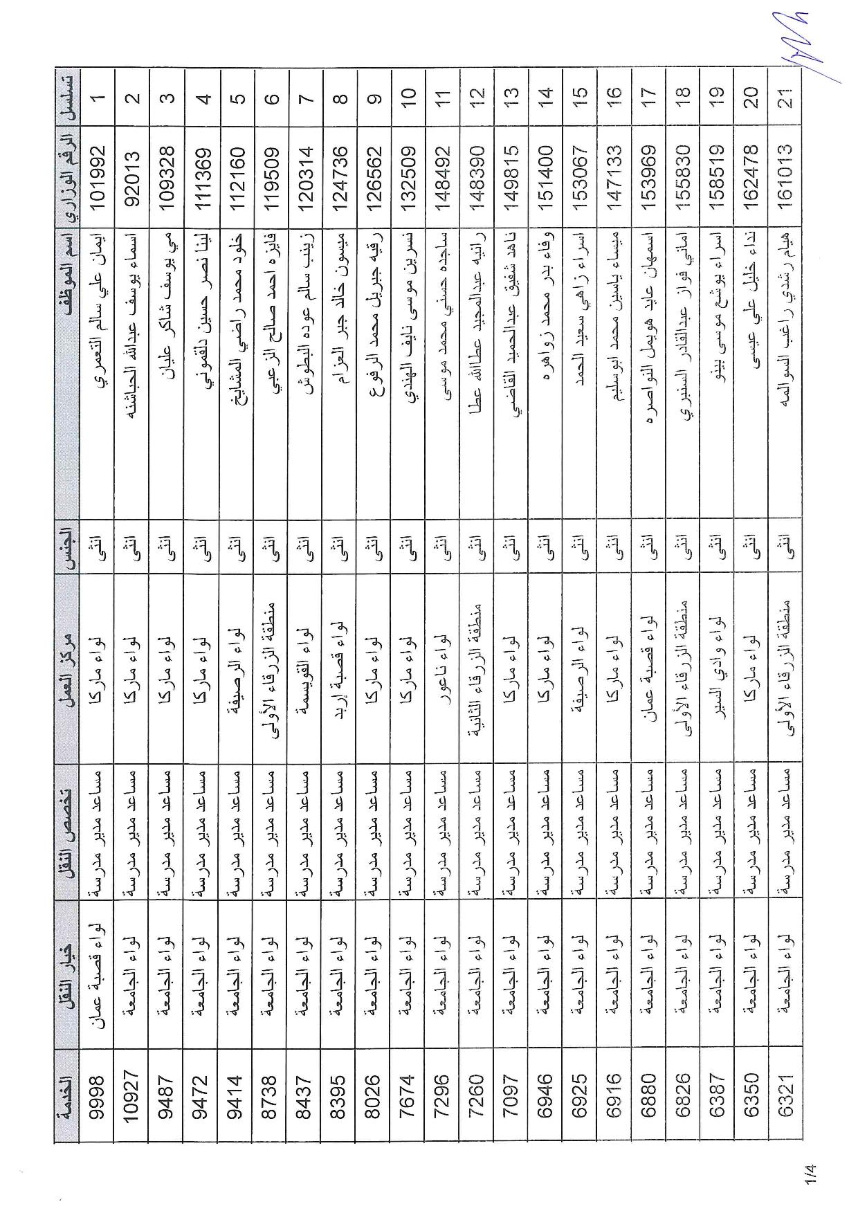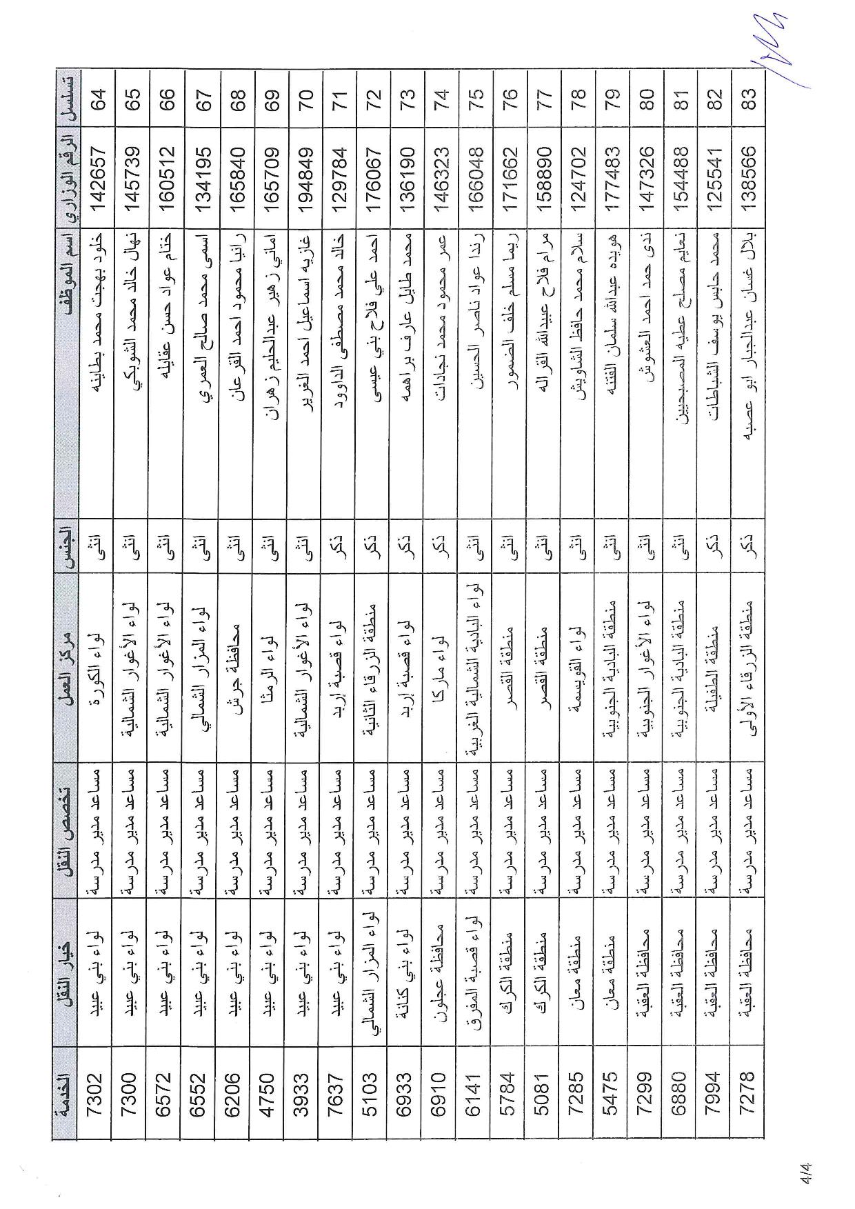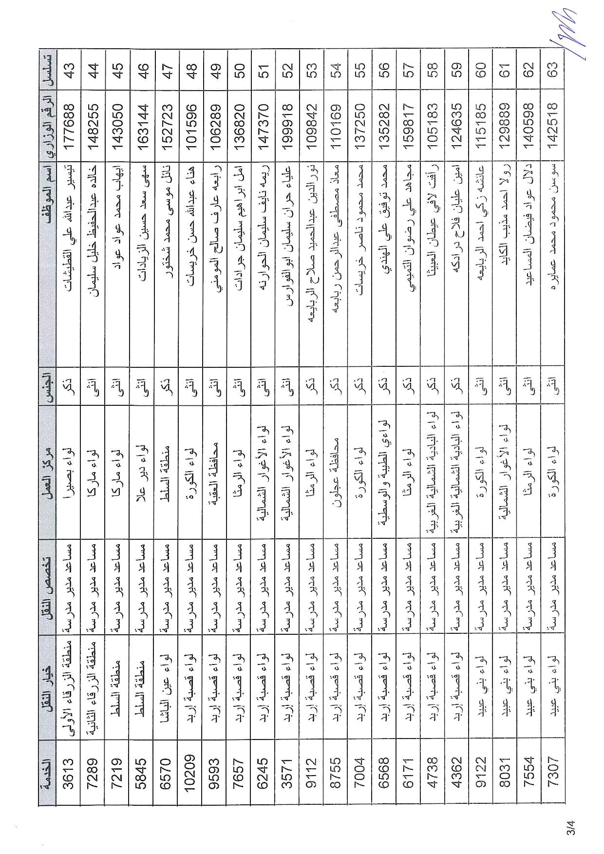 وشملت التنقلات معلمين ومعلمات، ومساعدي مدير مدرسة ، وفنيي حاسوب، ومرشدين تربويين.