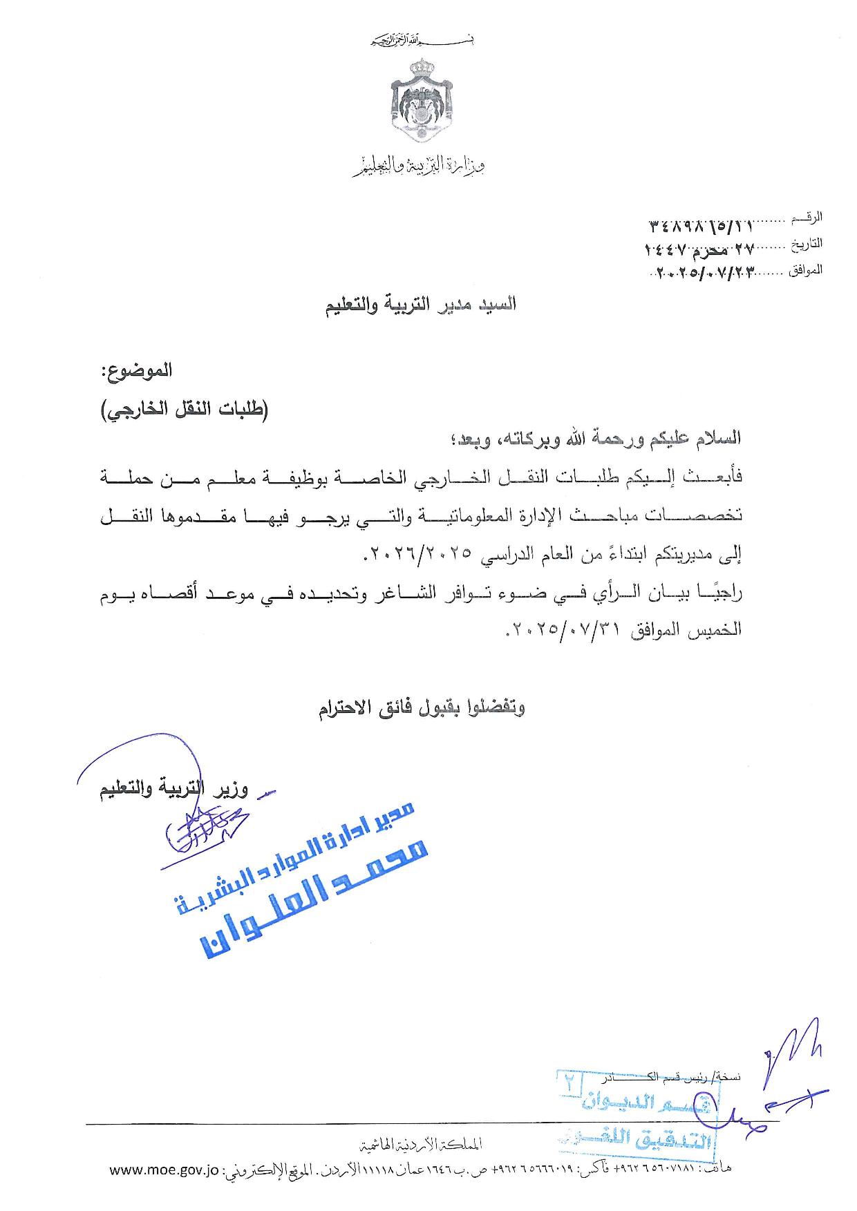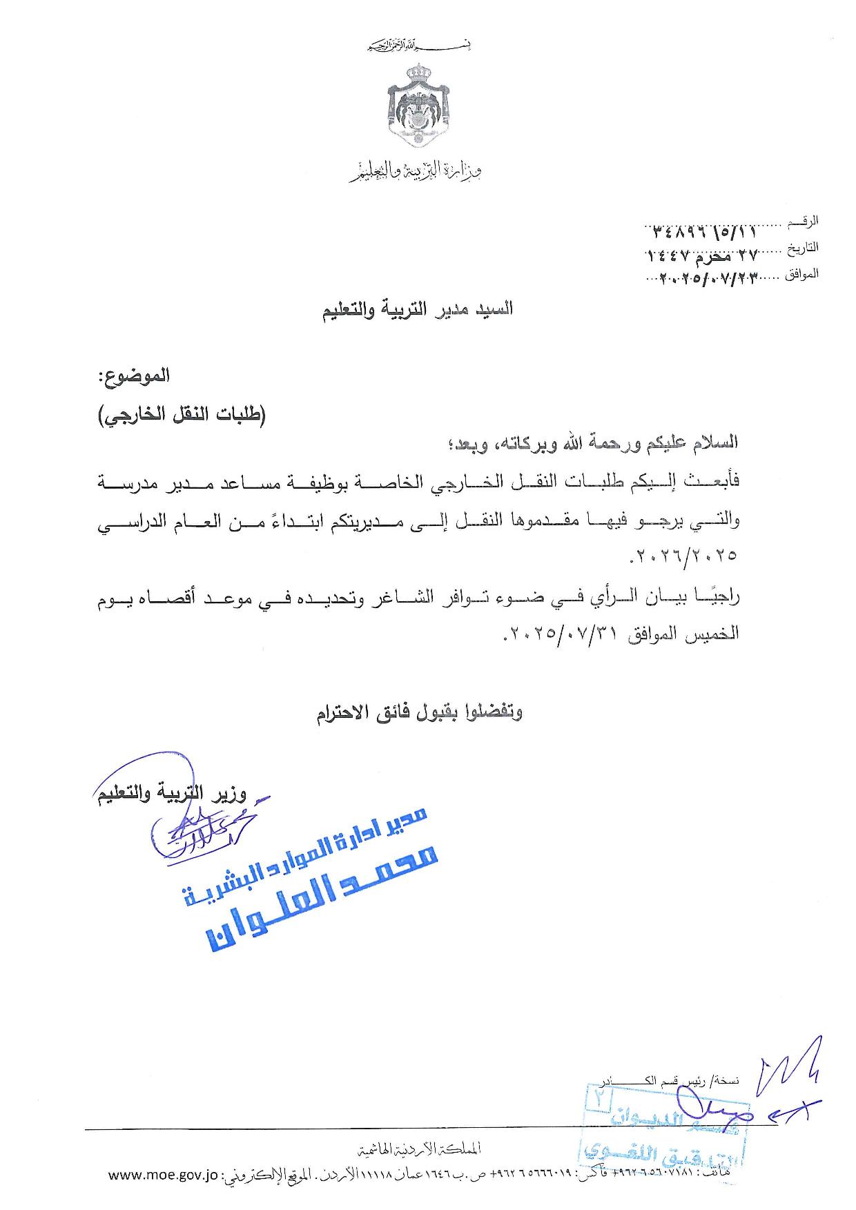 قرر وزير التربية والتعليم الدكتور عزمي محافظة، إجراء تنقلات خارجية في الوزارة.