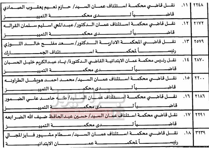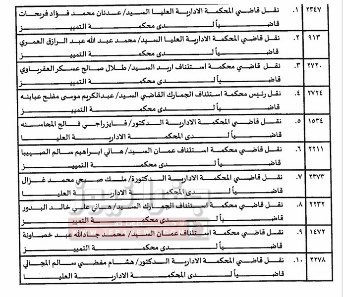 تنقلات قضائية واسعة تطال رؤساء محاكم (أسماء)