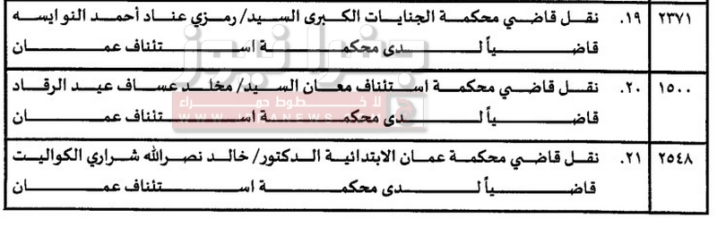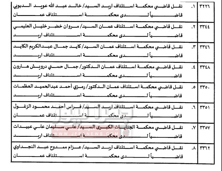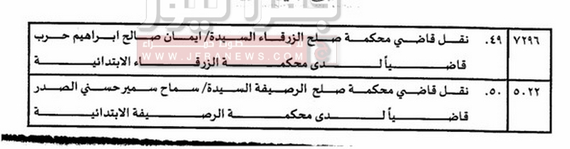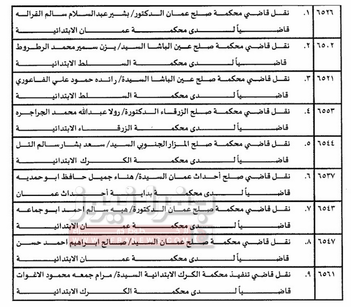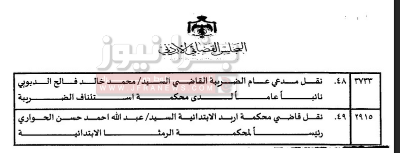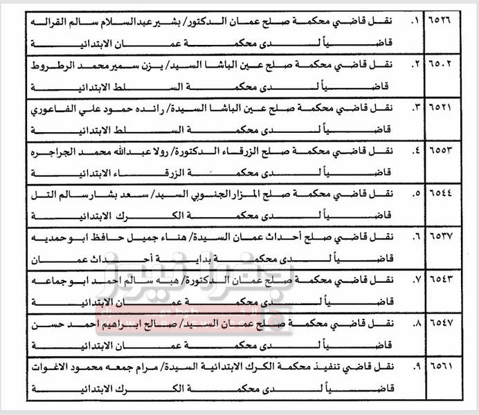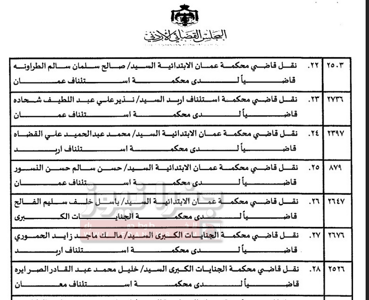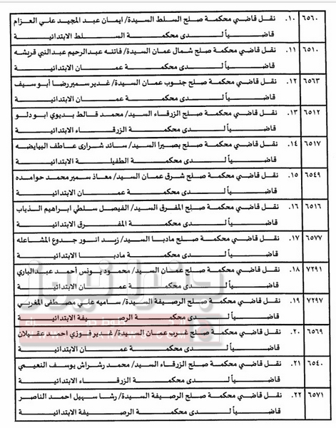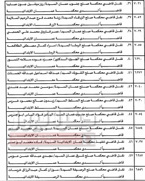 قرر المجلس القضائي اليوم الخميس، إجراء تنقلات قضائية، شملت عددًا من القضاة، ورؤساء محاكم، كما سبق ونشرت "جفرا نيوز" .