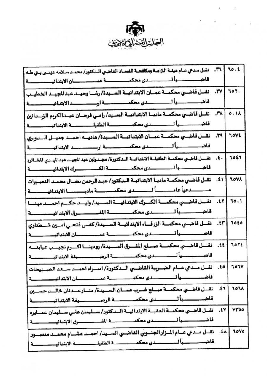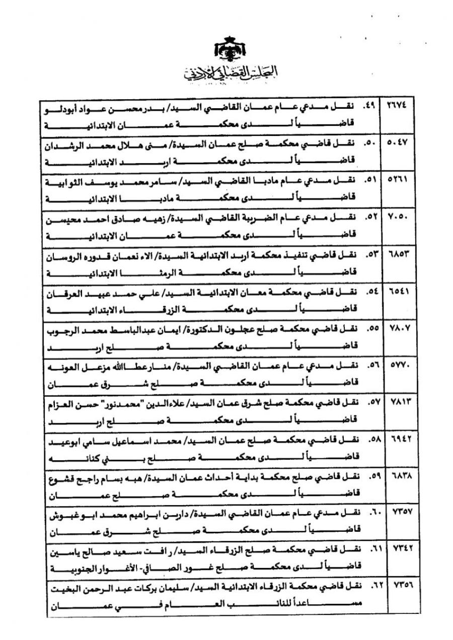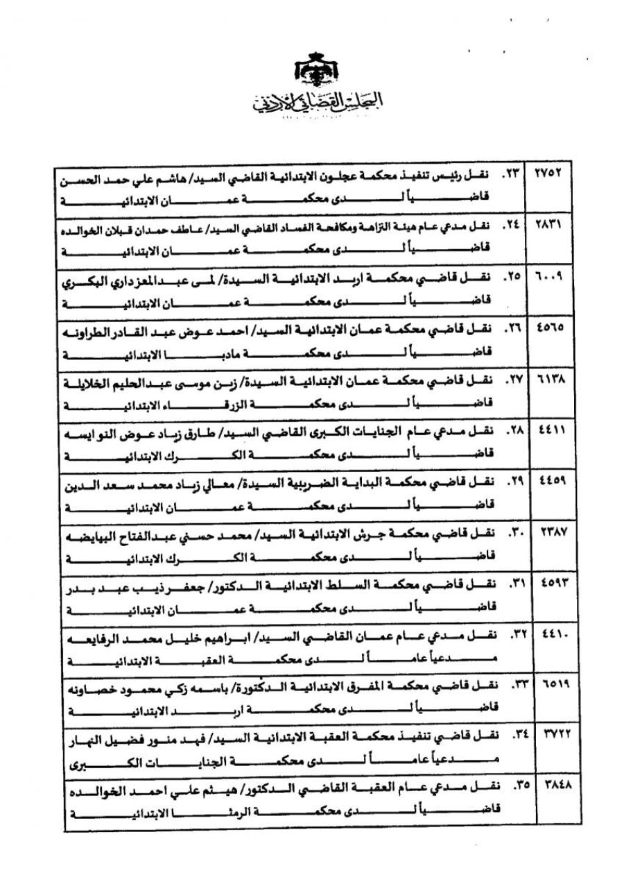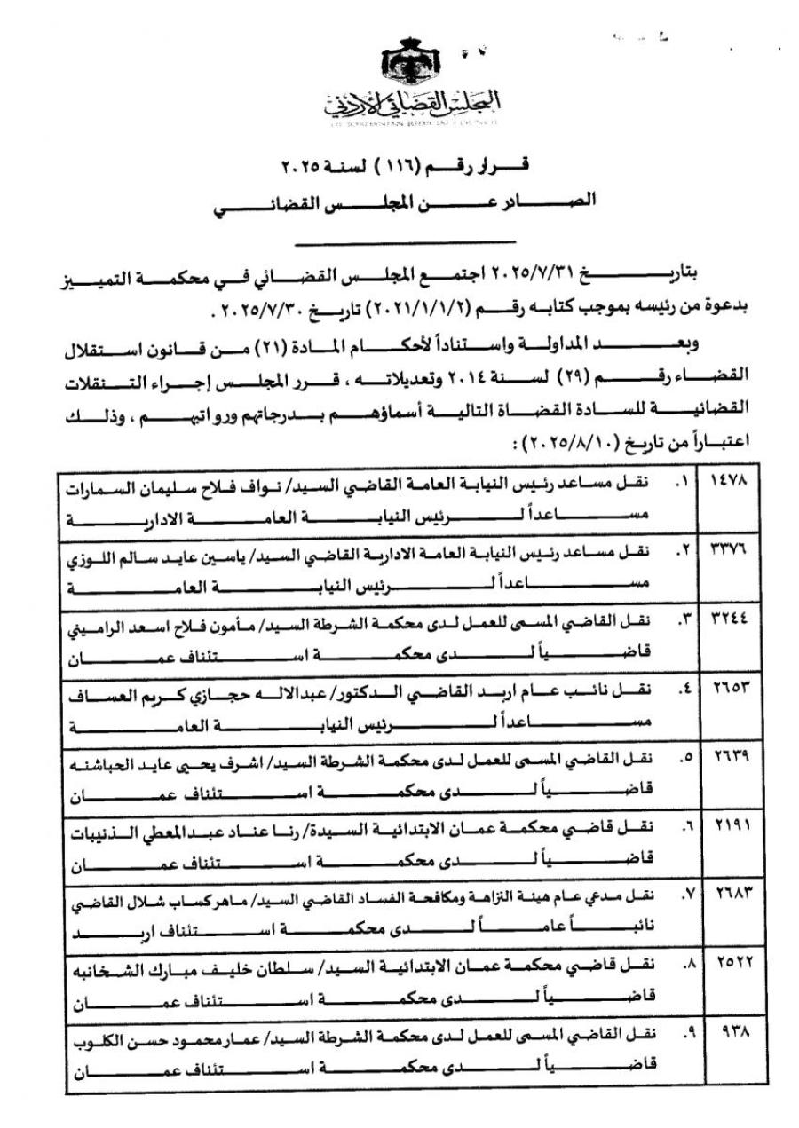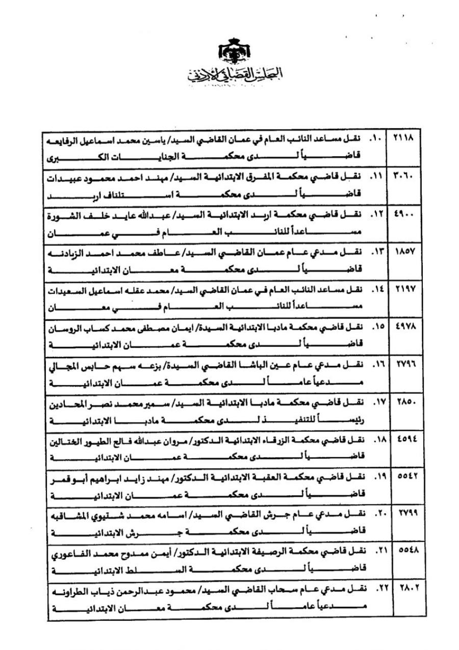 قرر المجلس القضائي اليوم الخميس، إجراء تنقلات وترفيعات قضائية جديدة، كما سبق ونشرت عنها "جفرا نيوز".