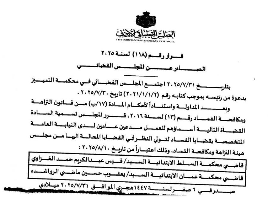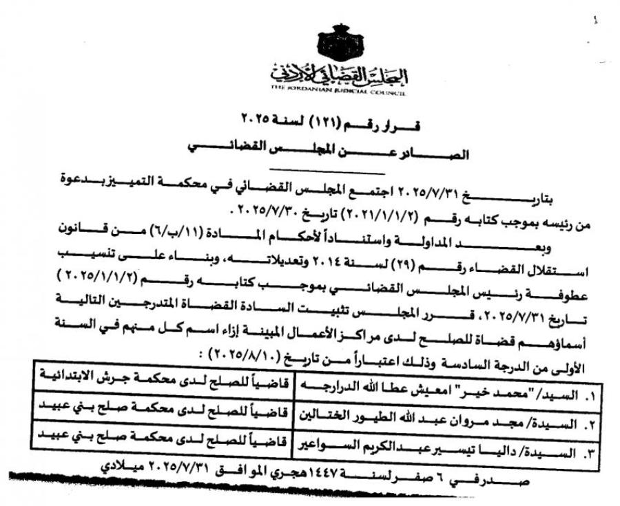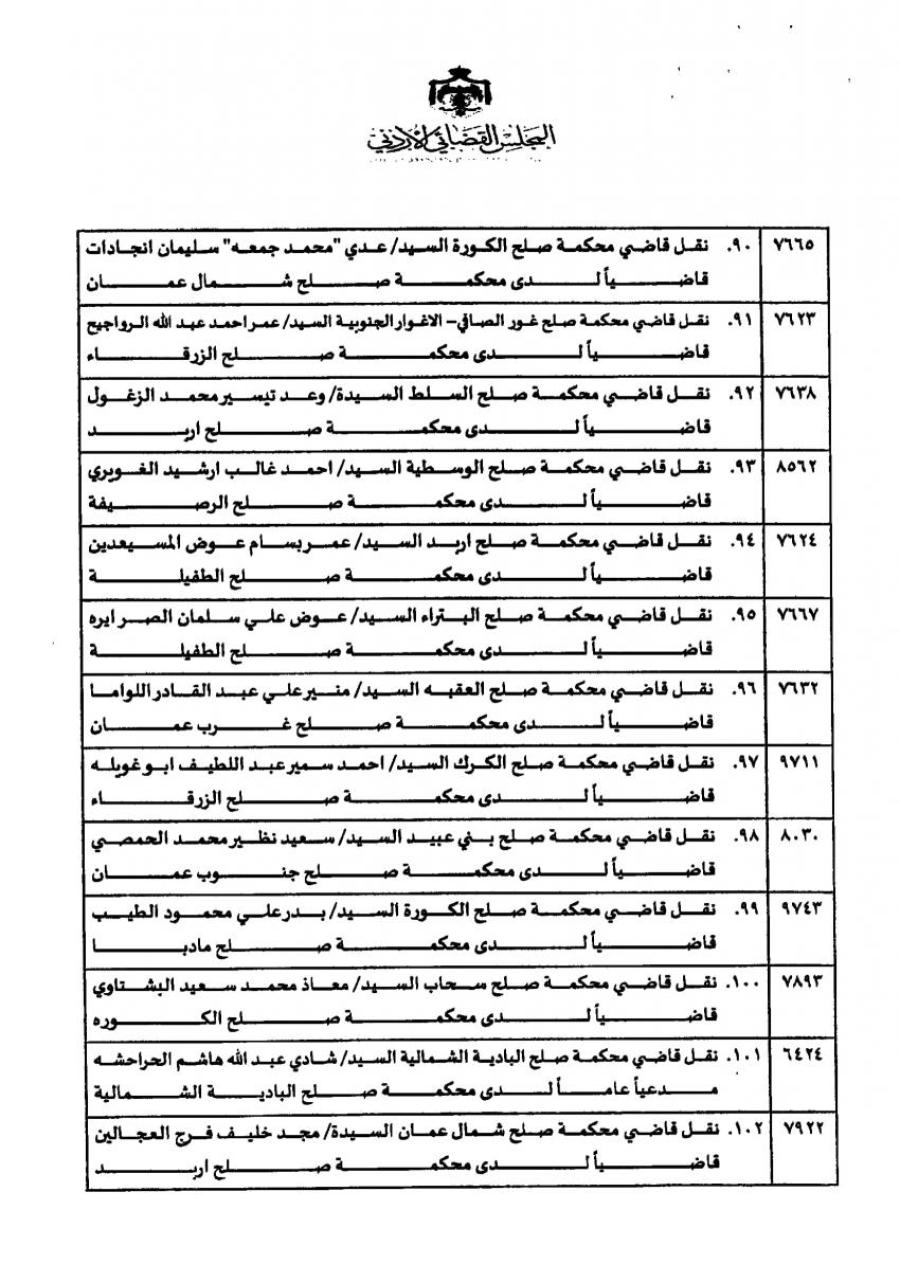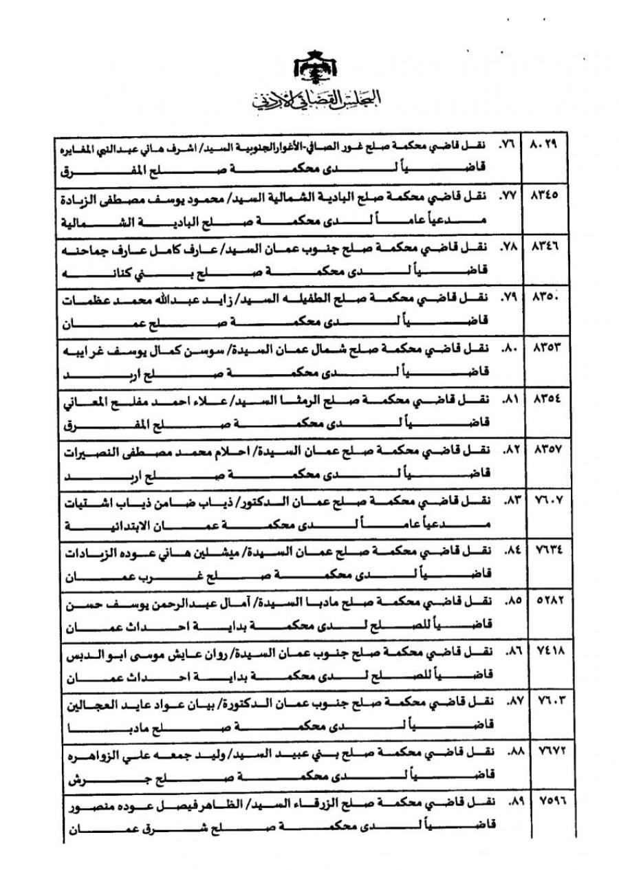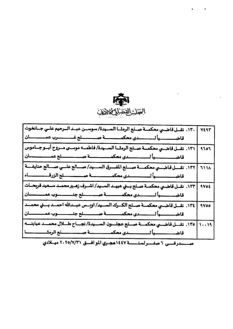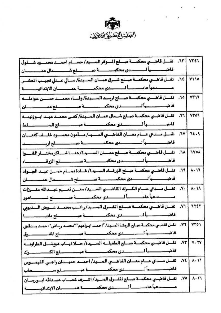 قرر المجلس القضائي اليوم الخميس، إجراء تنقلات وترفيعات قضائية جديدة، كما سبق ونشرت عنها "جفرا نيوز".