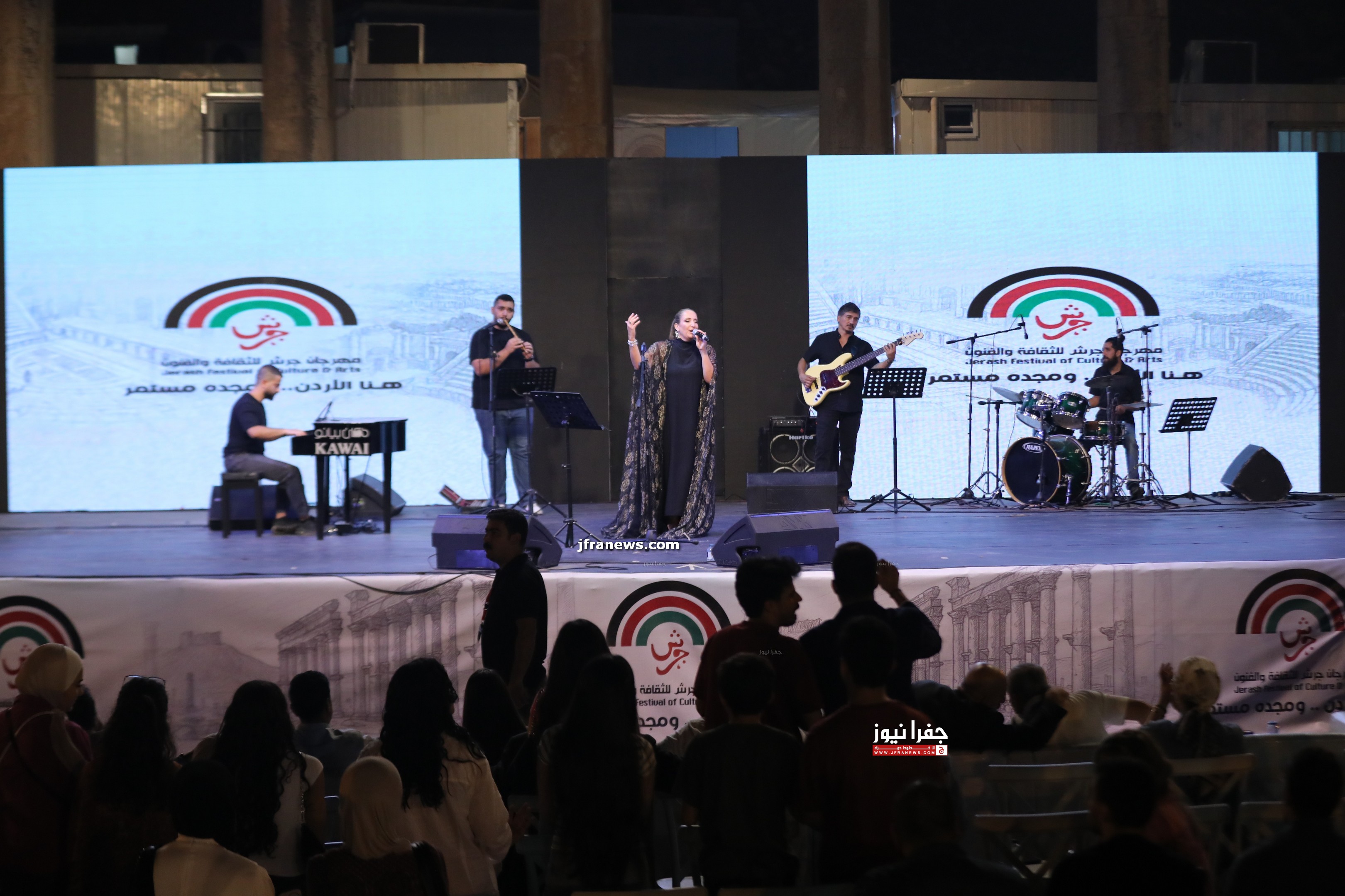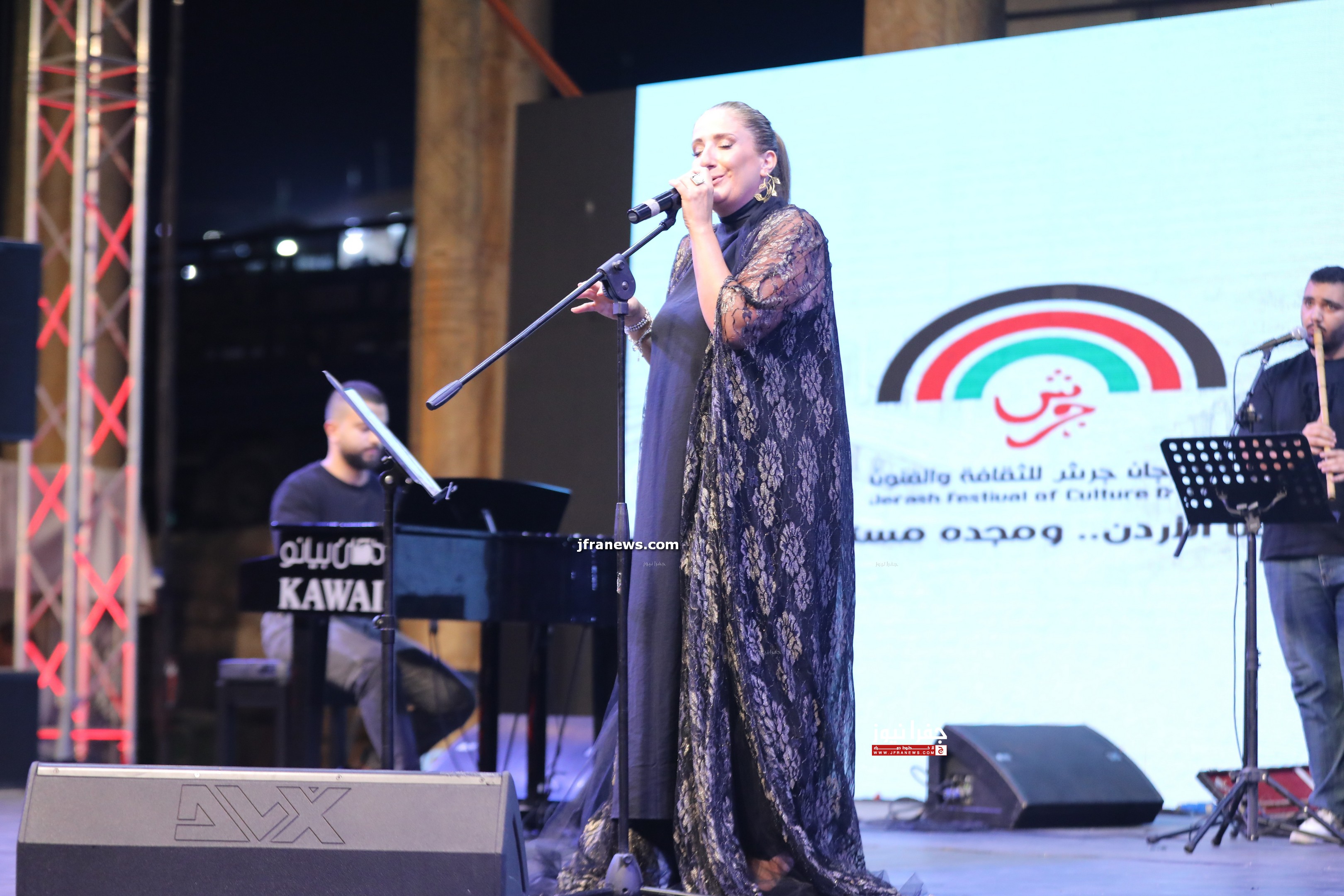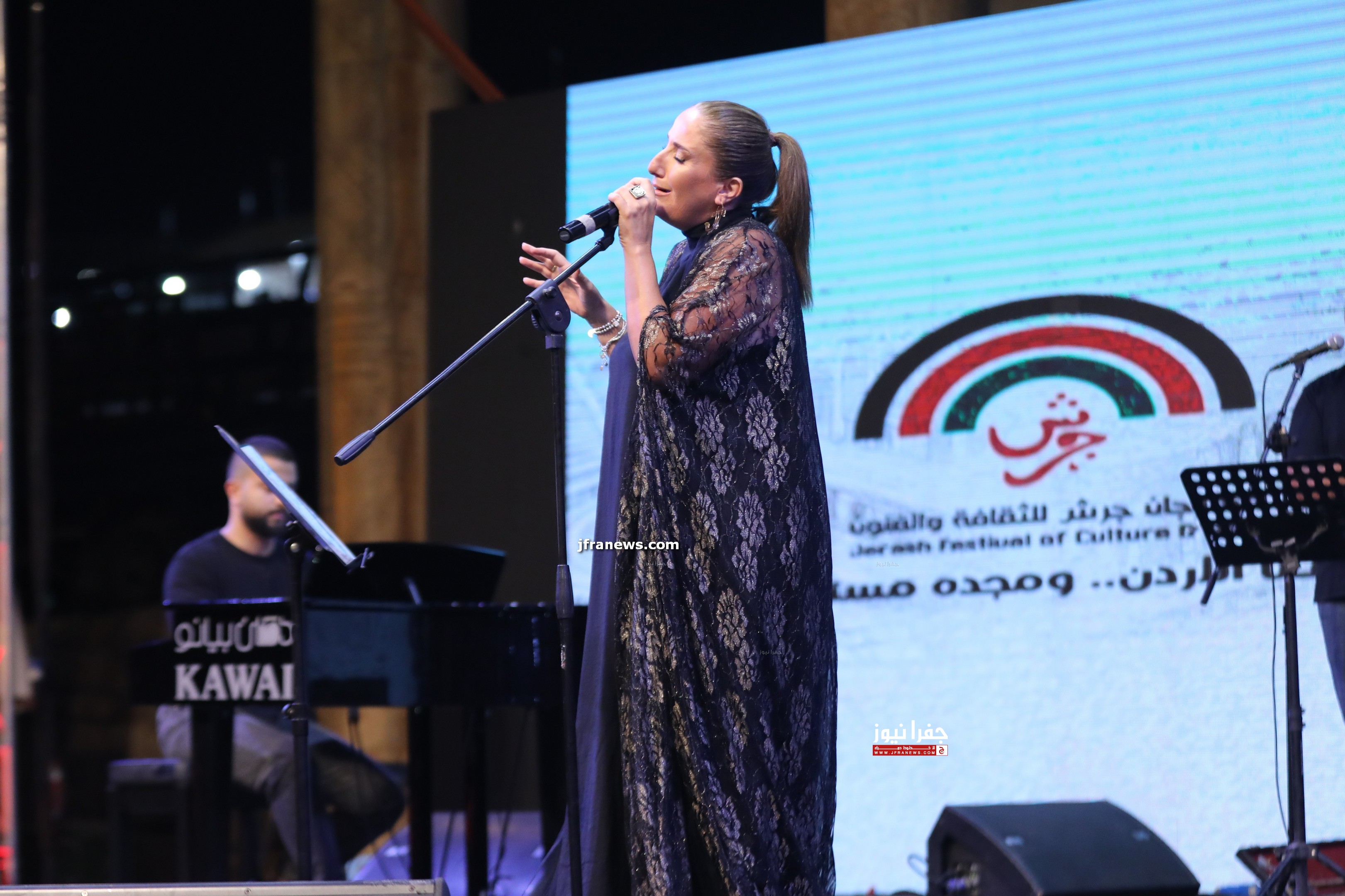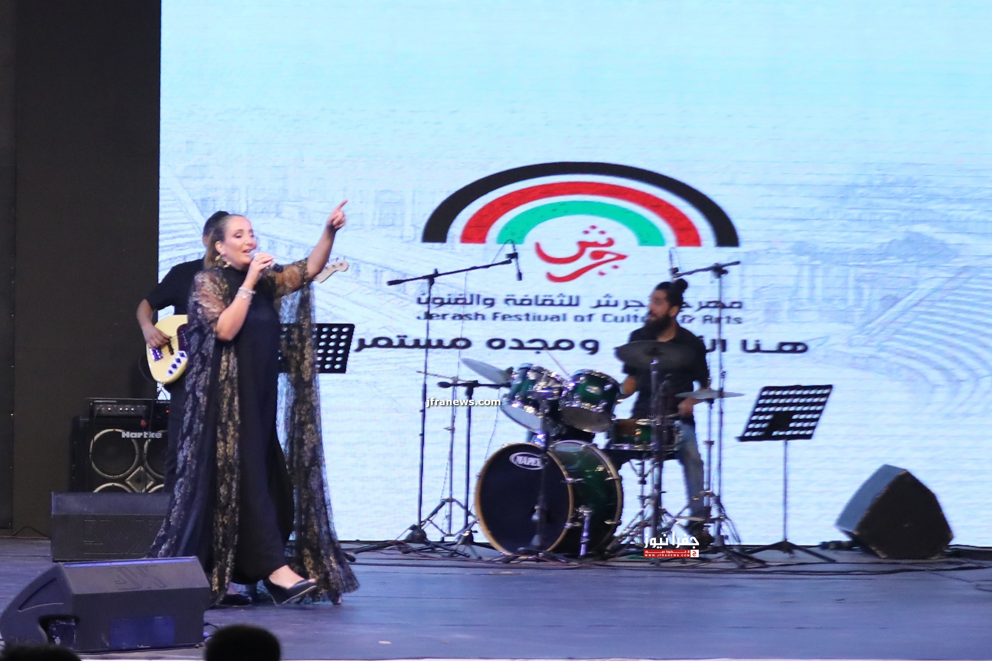جفرا نيوز - ألهبت الفنانة الأردنية مكادي نحاس مشاعر جمهور الساحة الكبير بأغانيها التي نهلت من الموروث الغنائي الشعبي والكلاسيكي الأردني والعربي الأصيل المفعم بالشجن والمفردة العميقة في ختام فعاليات الساحة الرئيسة ضمن مهرجان جرش للثقافة والفنون تحت شعار "هنا الأردن..ومجده مستمر".