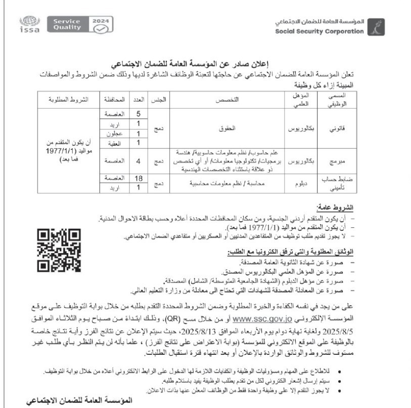 أعلنت مؤسسات حكومية عن حاجتها لتعبئة وظائف شاغرة اليوم الثلاثاء.