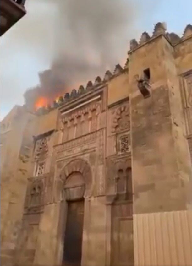 اندلع، أول أمس الجمعة، حريق كبير بمسجد قرطبة التاريخي في إسبانيا، حيث امتدت ألسنة اللهب بسرعة من سطح المبنى.