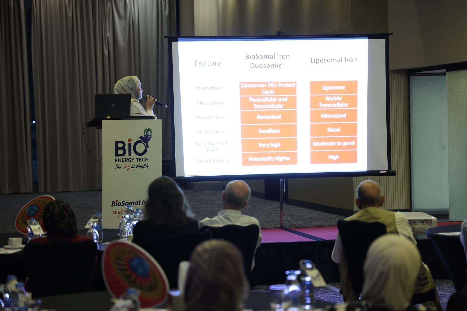 من جانبها، قامت الدائرة العلمية و دائرة البحث والتطوير في شركة BioEnergyTech بتسليط الضوء على آلية عمل المنتج وميزاته السريرية، مؤكدة على دوره في دعم صحة المرأة، خاصة خلال فترات الحمل والرضاعة، بالإضافة إلى فعاليته العالية في تحسين مستويات الحديد دون التسبب بمشاكل هضمية.