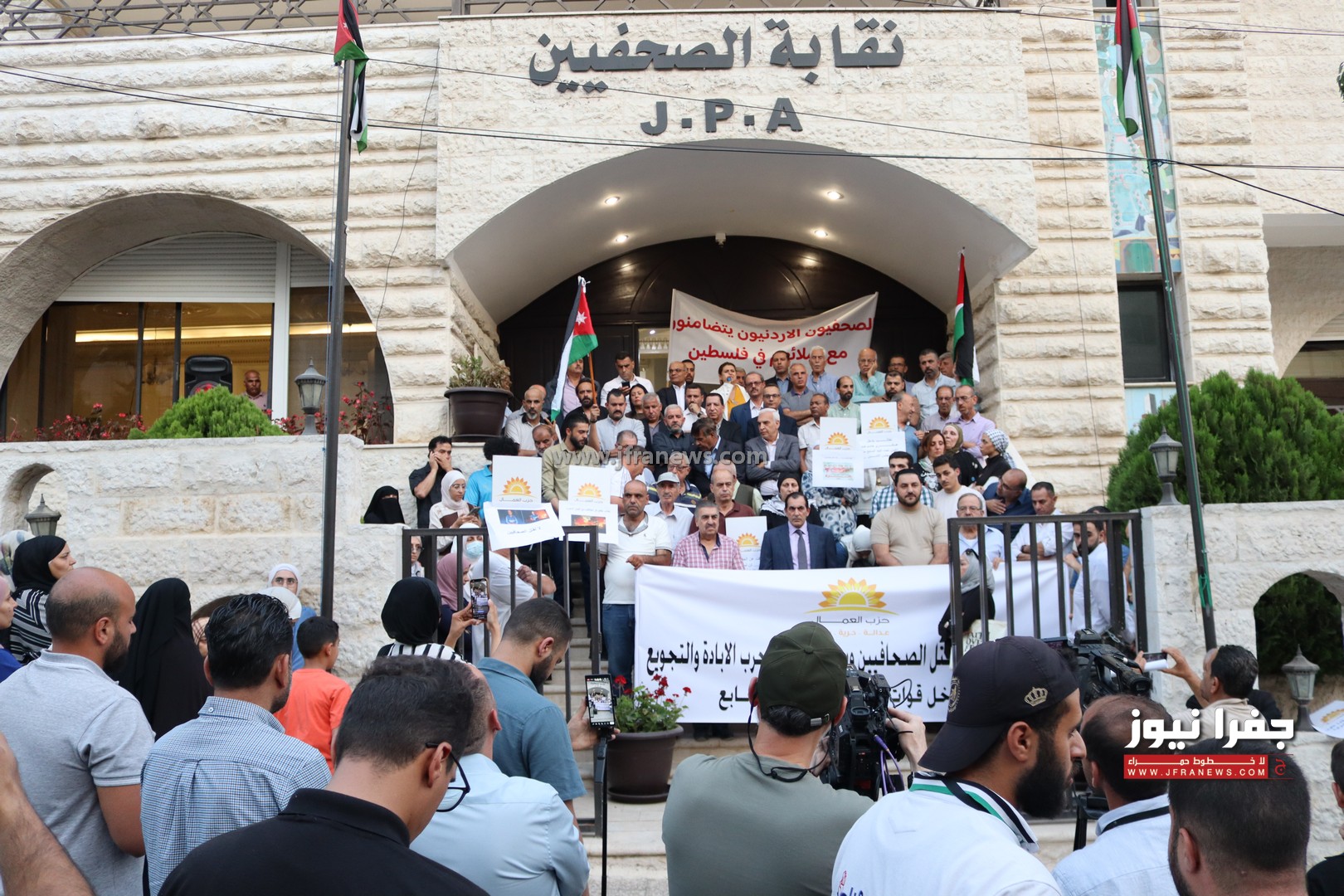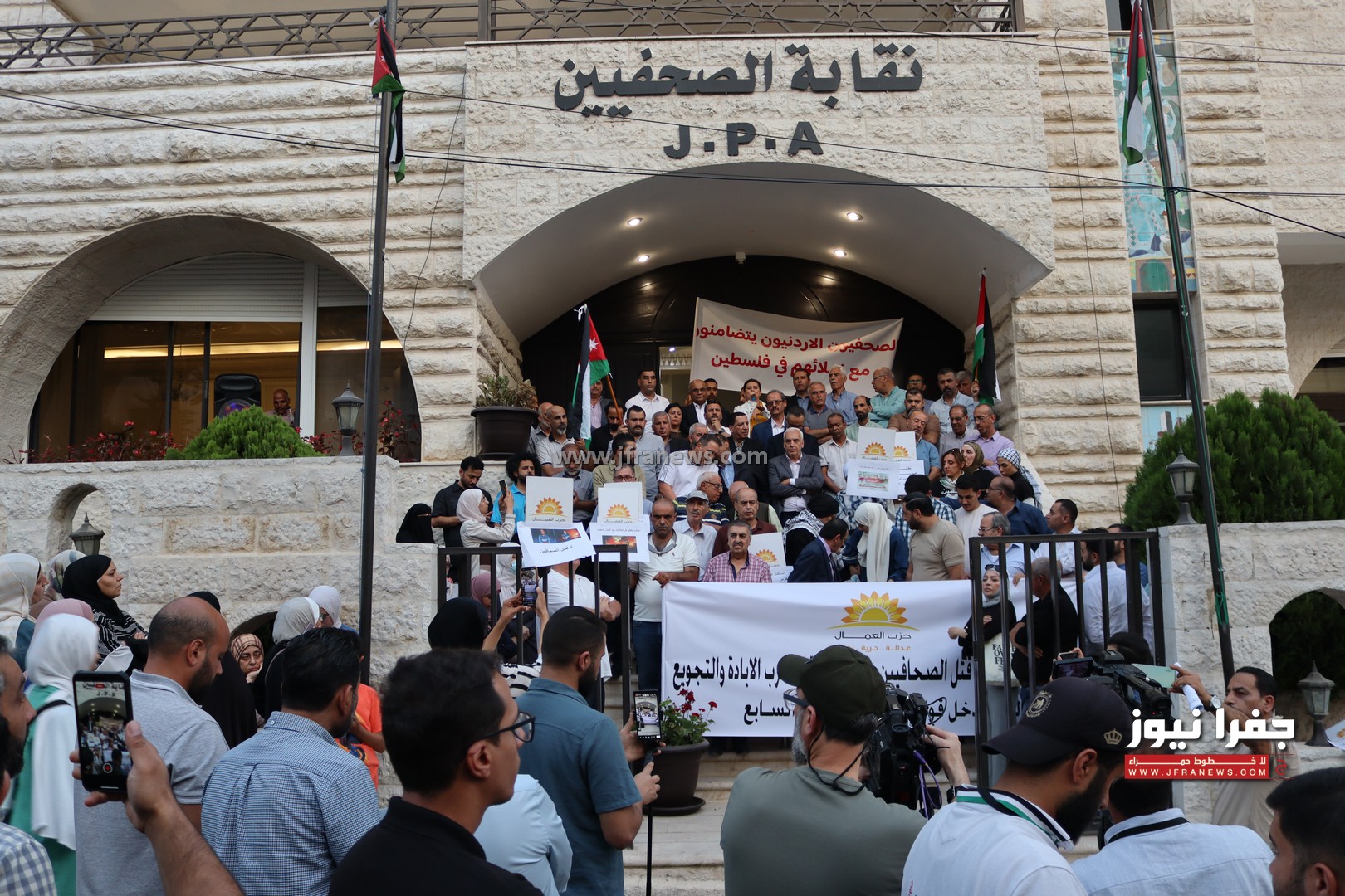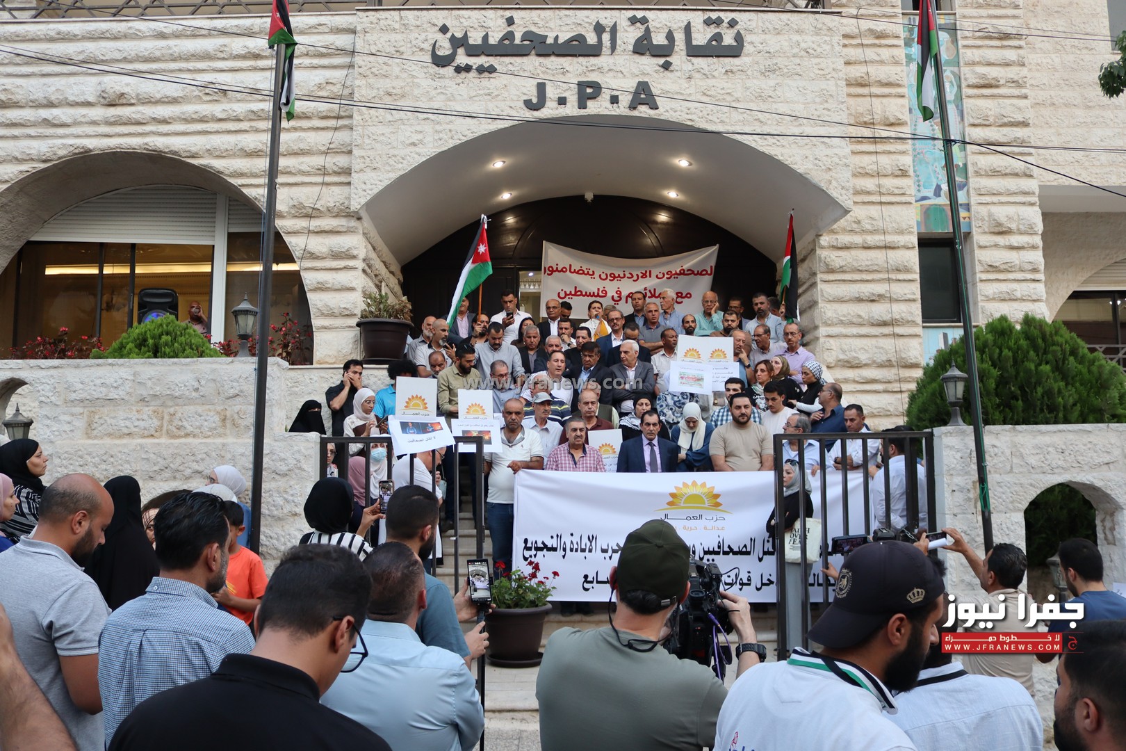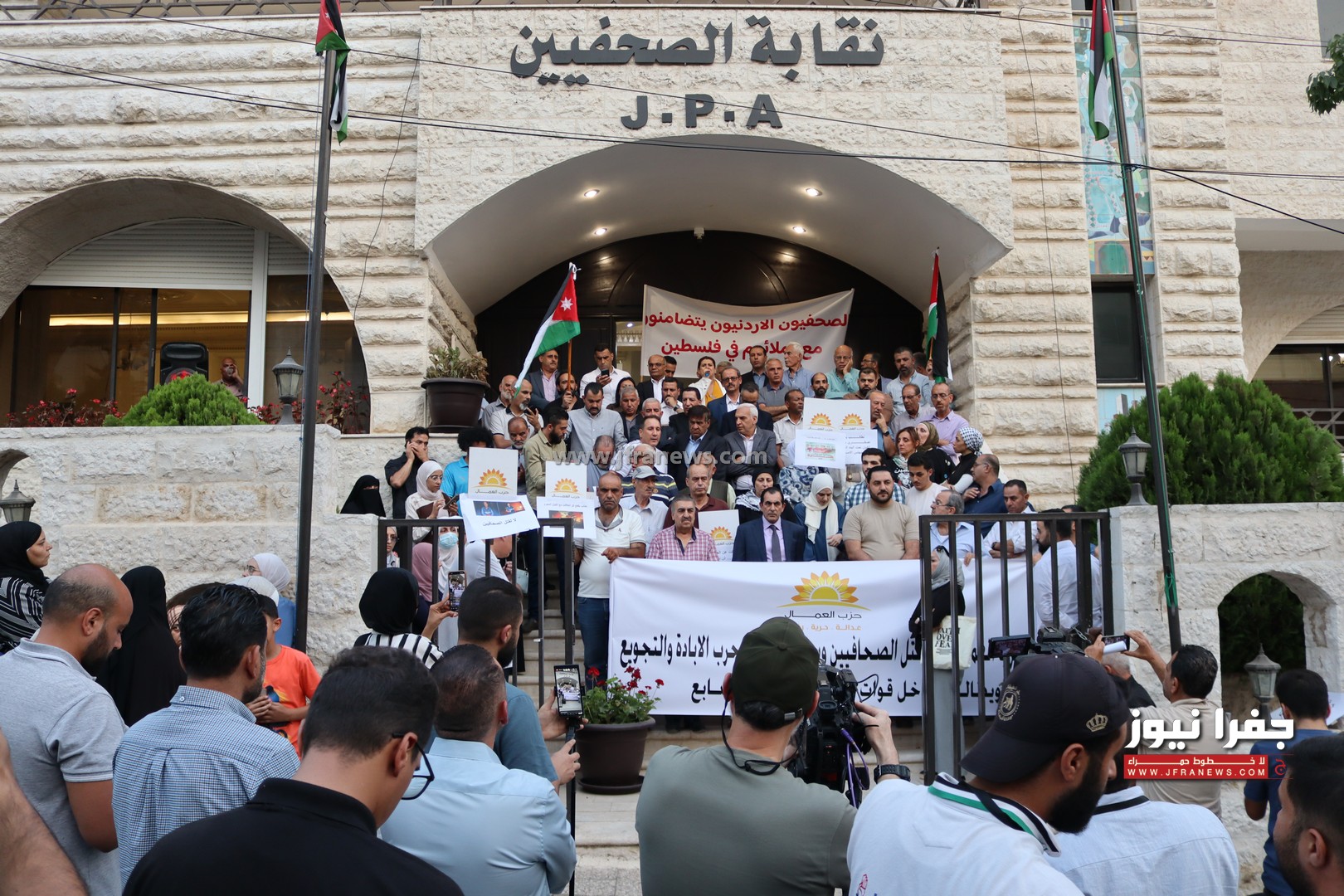 جفرا نيوز - نظمت نقابة الصحفيين الأردنيين، مساء اليوم الاثنين ، وقفة تضامنية أمام مبنى النقابة، عقب استشهاد الصحفي الفلسطيني أنس الشريف في غزة، تنديدًا بجرائم القتل الممنهج التي يتعرض لها الصحفيون والمصورون على يد الاحتلال الإسرائيلي.