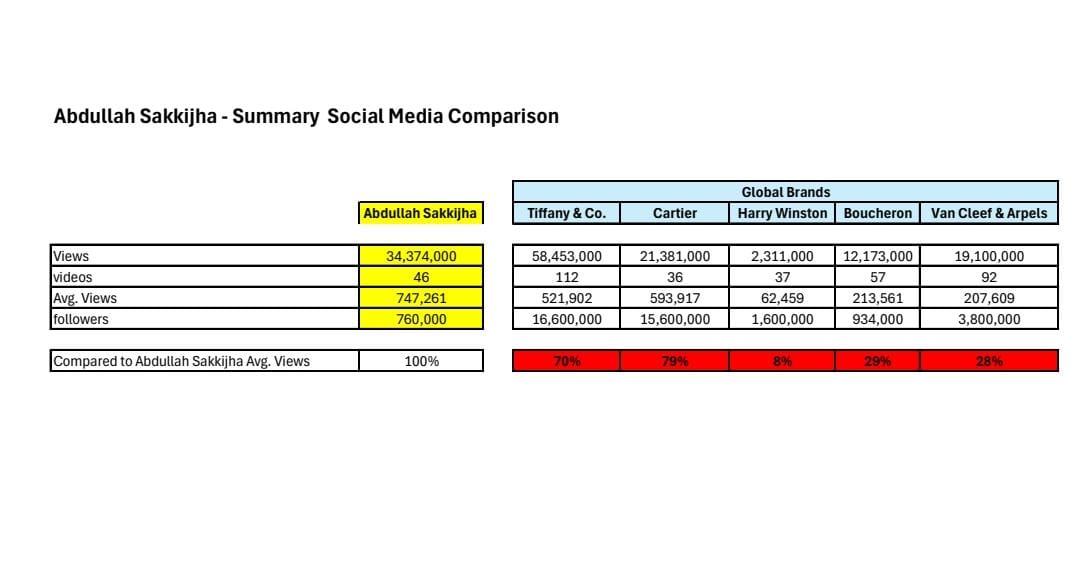 مجوهرات عبدالله سكجها على القمة وبالمركز الأول، من حيث نسب المشاهدات على مختلف منصات التواصل الاجتماعي ، وبأوقات وفترات قياسية، محققة بذلك الصدارة.