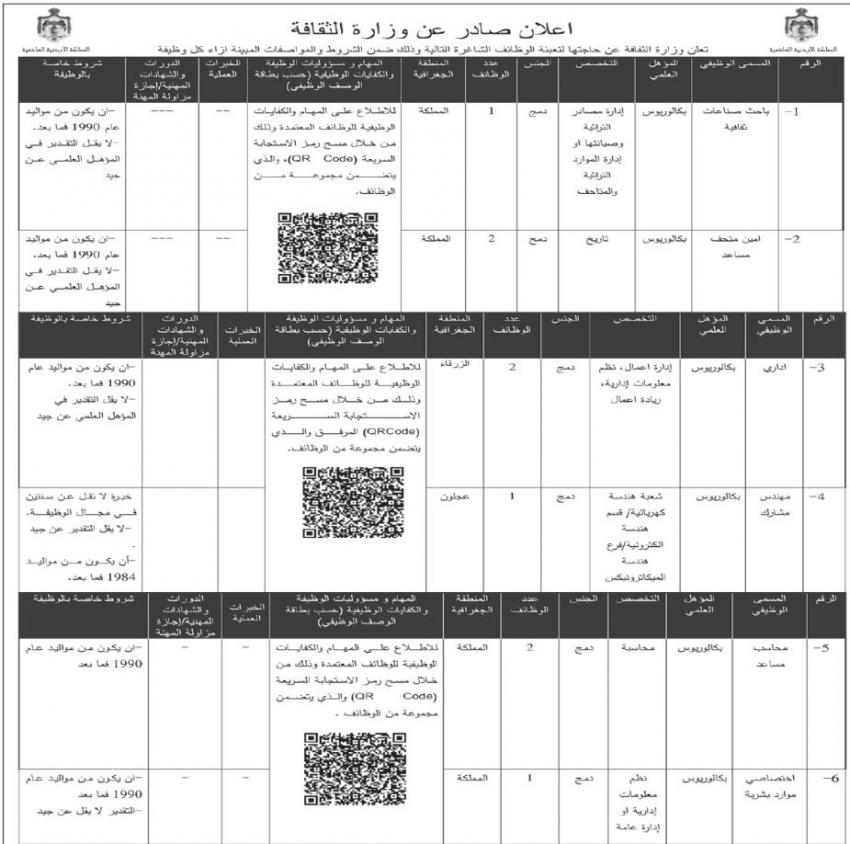 أعلنت مؤسسات حكومية اليوم الاثنين عن حاجتها لتعبئة وظائف شاغرة.
