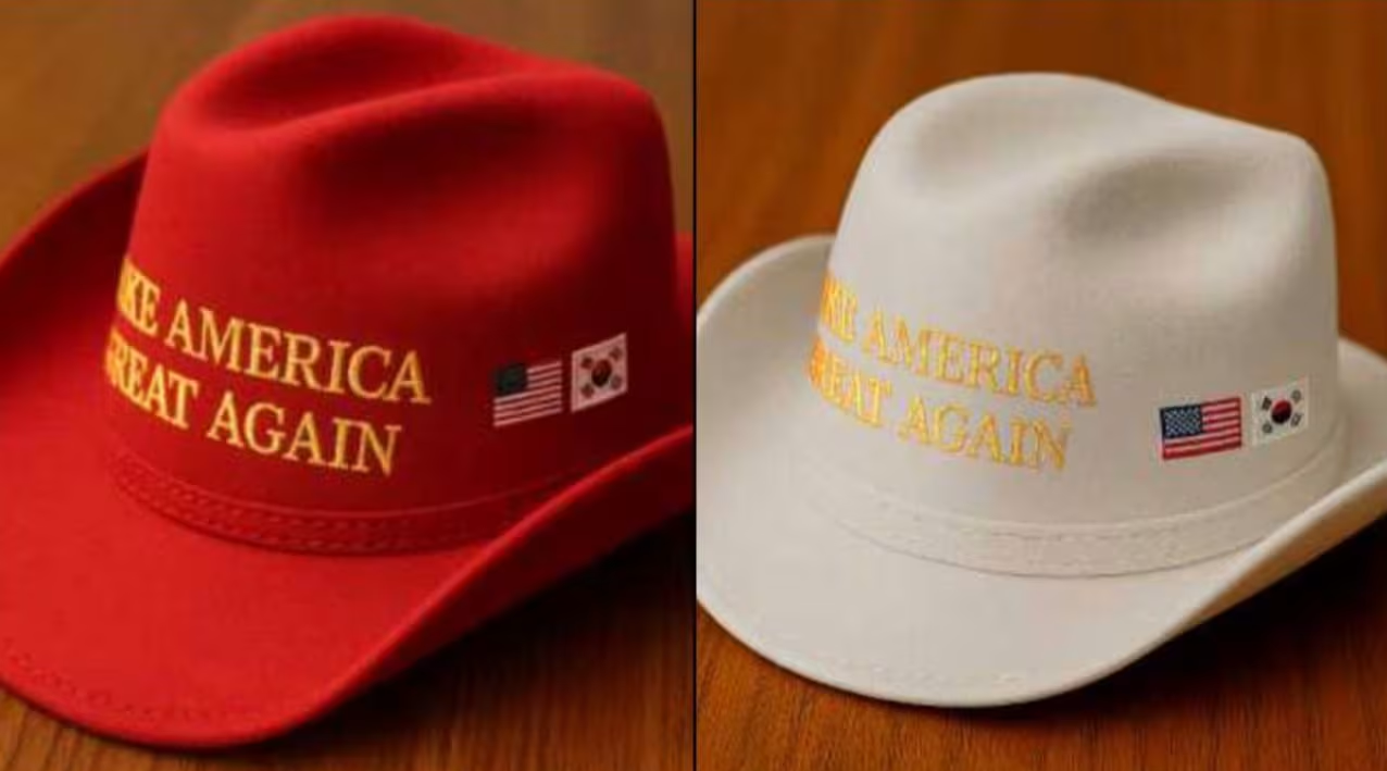 وكانت القبعة الحمراء مخصصة للترامب، بينما أُهديت القبعة البيضاء للسيدة الأمريكية الأولى ميلانيا، وكلاهما مطرزان أيضًا بعلمي الولايات المتحدة وكوريا الجنوبية.