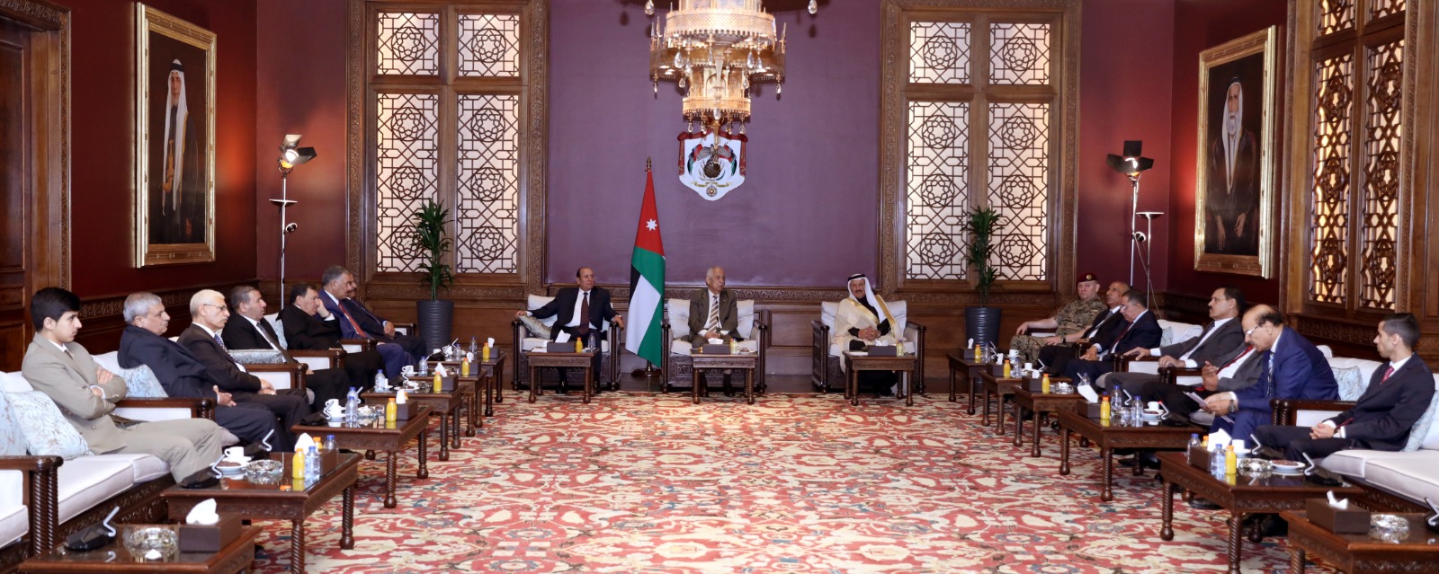 التقى رئيس الديوان الملكي الهاشمي يوسف حسن العيسوي، اليوم الثلاثاء، وفدًا عددا من كبار الضباط المتقاعدين، وذلك بحضور مستشار جلالة الملك لشؤون العشائر كنيعان البلوي، والعميد الركن رعد العمايرة، مدير المكتب العسكري الخاص لجلالة الملك.