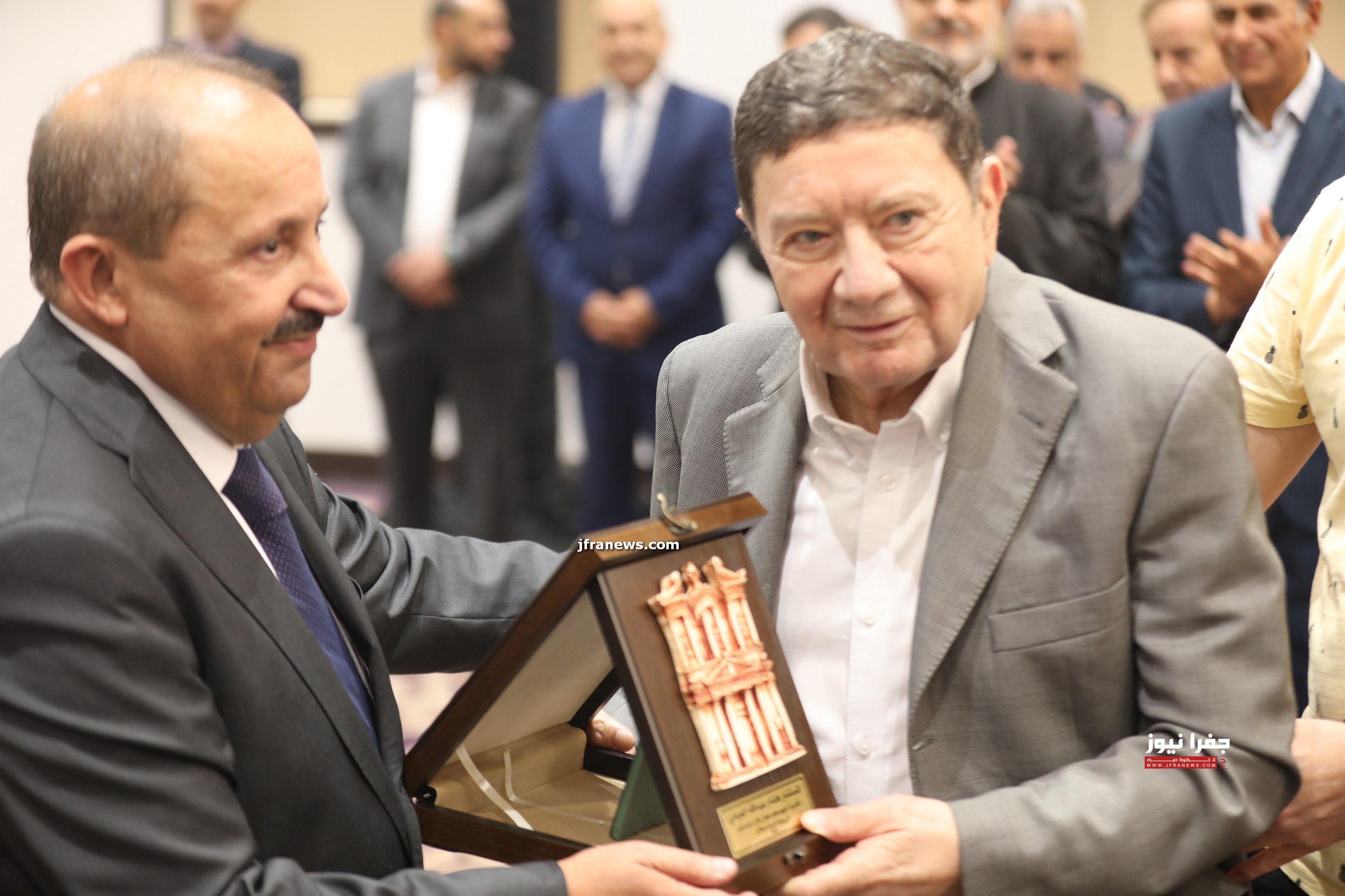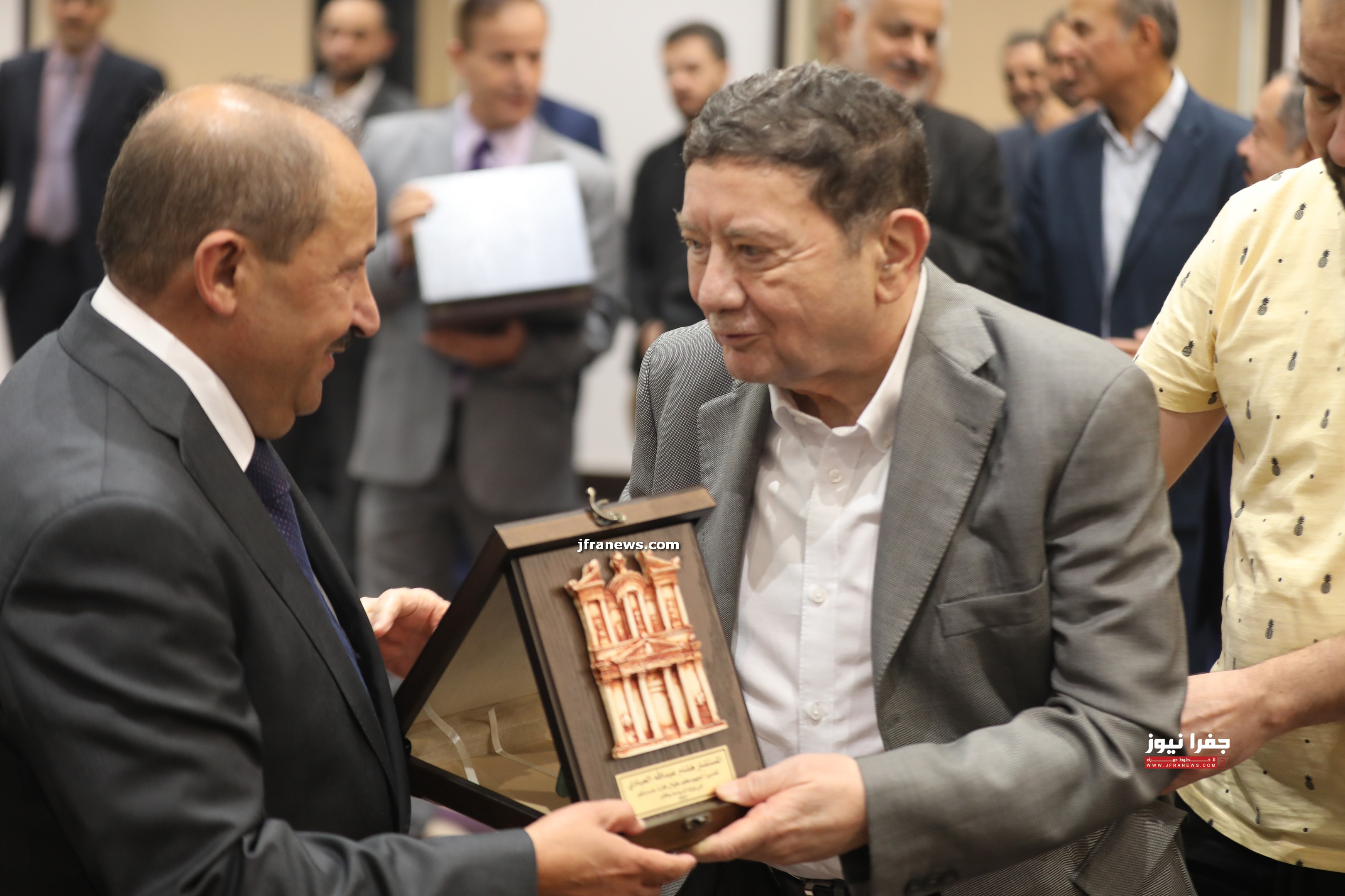 وفي ختام الحفل، قام الوزير بتقديم درع التكريم للسيد هشام العبادي، مثلما قدمت جمعية الفنادق الأردنية ومعهد فن الفسيفساء دروعاتكريمية للمستشار العبادي .