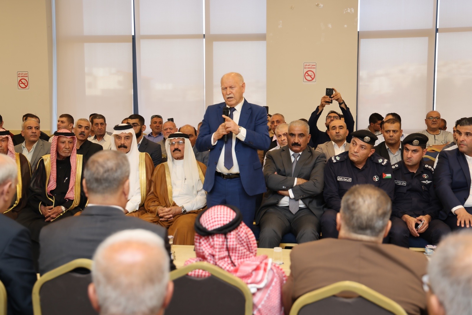 "توجهت جاهة كريمة مكونة من الشيوخ ووجهاء العشائر الموقعين أدناه إلى ديوان عشيرة النجداوي في صويلح، اليوم الجمعة الموافق 29/8/2025، وبعد التداول في حادثة إطلاق النار من قبل المدعو عامر خير محمود (من عشيرة السويلميين)، الموقوف على حساب هذه القضية، على زوجة النائب السابق، وإصابتها بعيار ناري في رأسها، والتي ترقد حاليًا على سرير الشفاء، حيث تكرّمت عشيرة النجداوي وجميع أبناء عشائر السلط بإعطاء عطوة عشائرية على الشروط التالية: