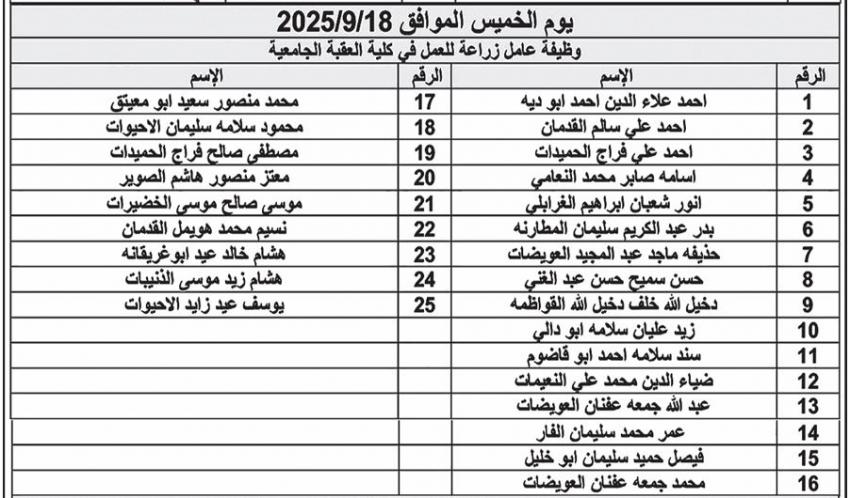 وفي سياق متصل، دعت جامعة البلقاء التطبيقية المرشحين المدرجة أسماؤهم التواجد في مركز الجامعة - السلط / وحدة الخدمات العامة الساعة التاسعة صباحاً حسب الأيام المحددة لـحضور الامتحان التنافسي مصطحبين معهم هوية الأحوال المدنية، وكل من يتخلف عن حضور الامتحان يعتبر مستنكفاً.