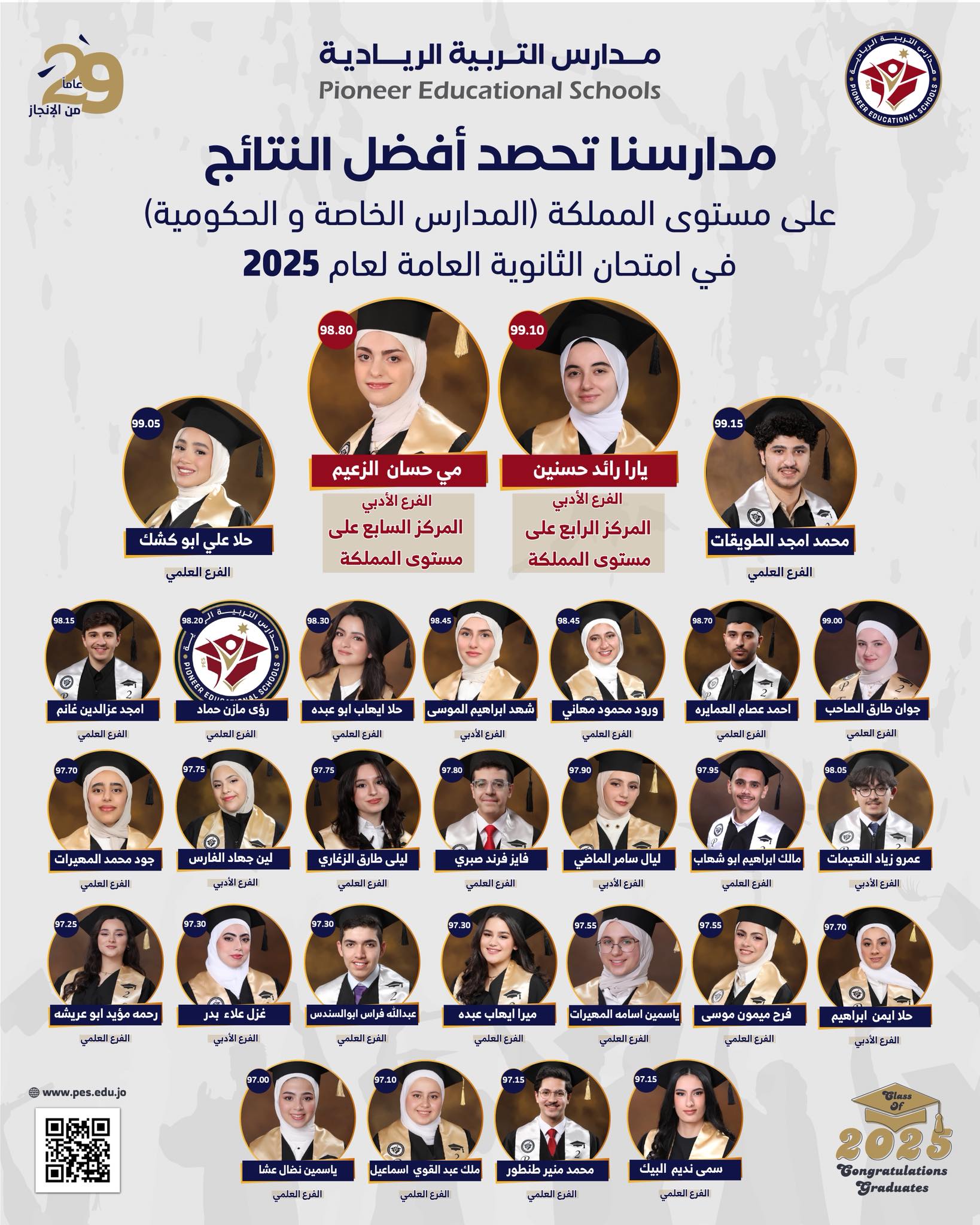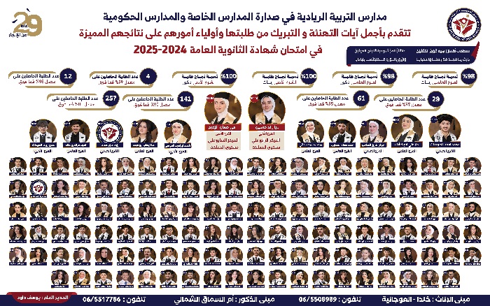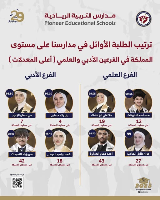 طلبة مدارس التربية الريادية جميعهم على قائمة الشرف .. ونتائج مبهرة في "التوجيهي"