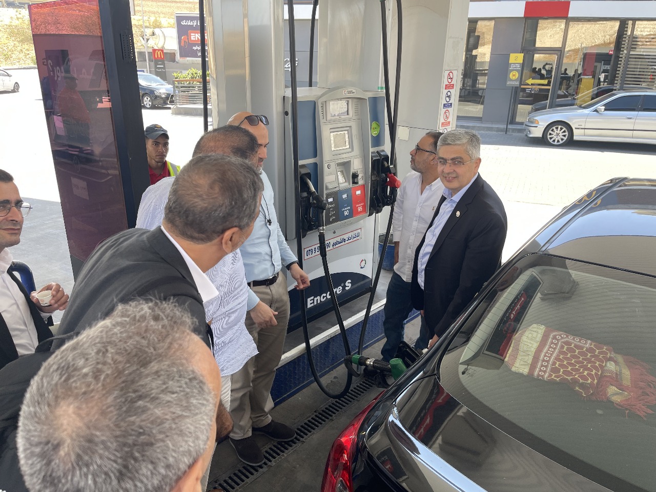 ومن ثم تم عمل زيارة ميدانية لاحد محطات الشركة النموذجية للاطلاع على الخدمات والحلول المتواجدة في محطات المناصير للزيوت والمحروقات وتجربة تعبئة من خلال خدمة AmanFill من قبل الحضور.