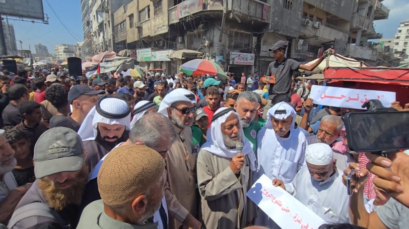 وأطلق المتظاهرون على الفعالية اسم "مسيرة الأكفان" تأكيدا على التشبث بأرضهم في ظل تصاعد الإنذارات الإسرائيلية لسكان مدينة غزة بإخلاء المدينة نحو مناطق المواصي جنوب القطاع.