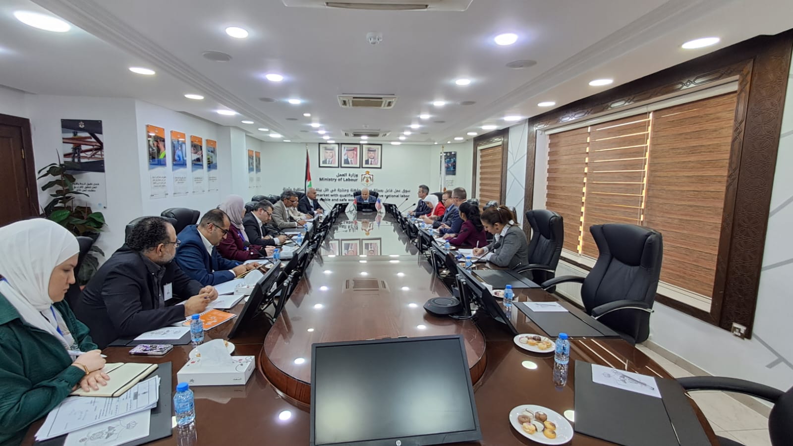 وجال الوفد الضيف في غرفة السيطرة في مديرية التفتيش المركزية في الوزارة واستمعوا إلى شرح مفصل من أمين عام الوزارة ومدير التفتيش حول آلية الرقابة على سوق العمل لضمان الحقوق العمالية للعمال والتأكد من التزام المنشآت بمعايير السلامة والصحة المهنية.