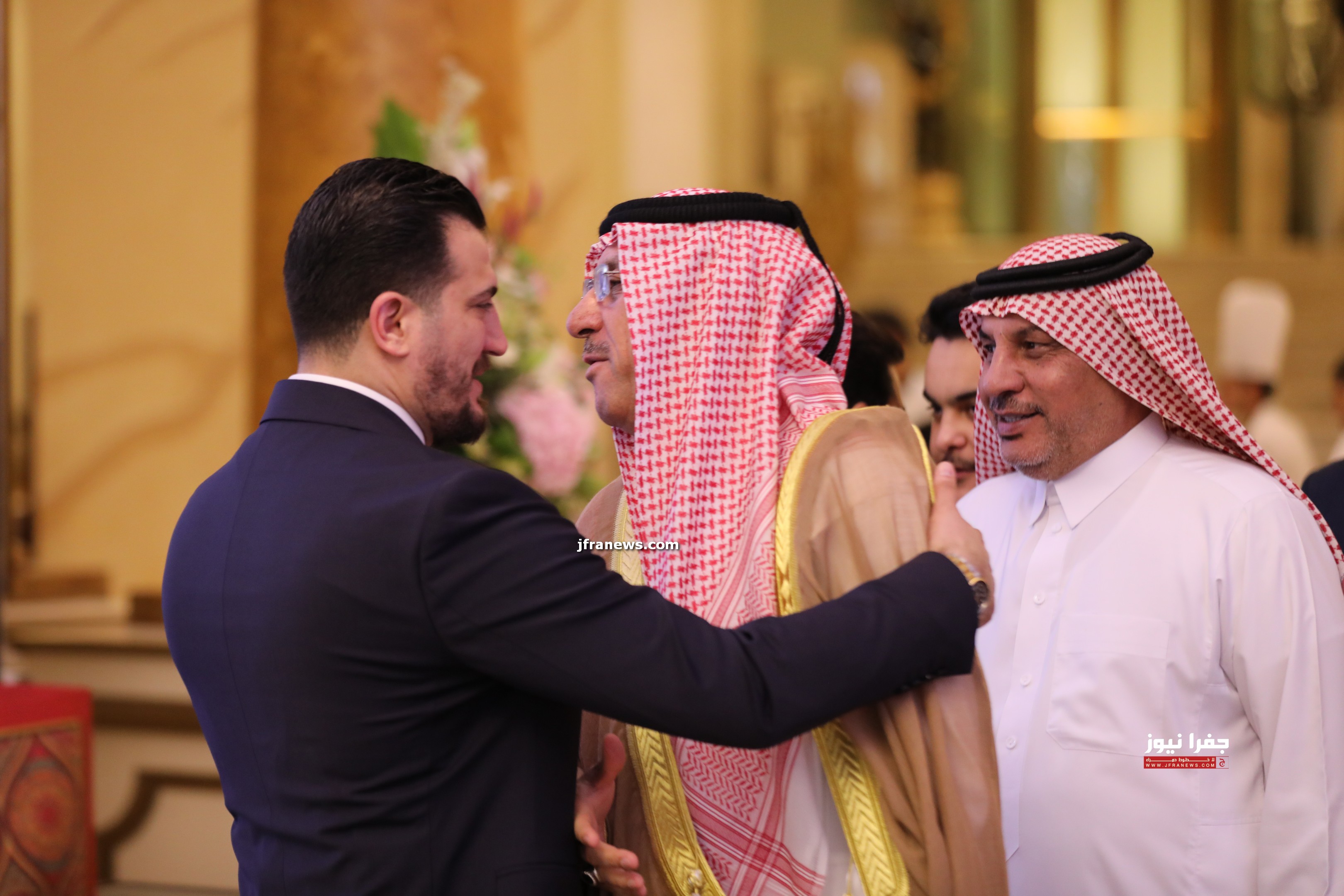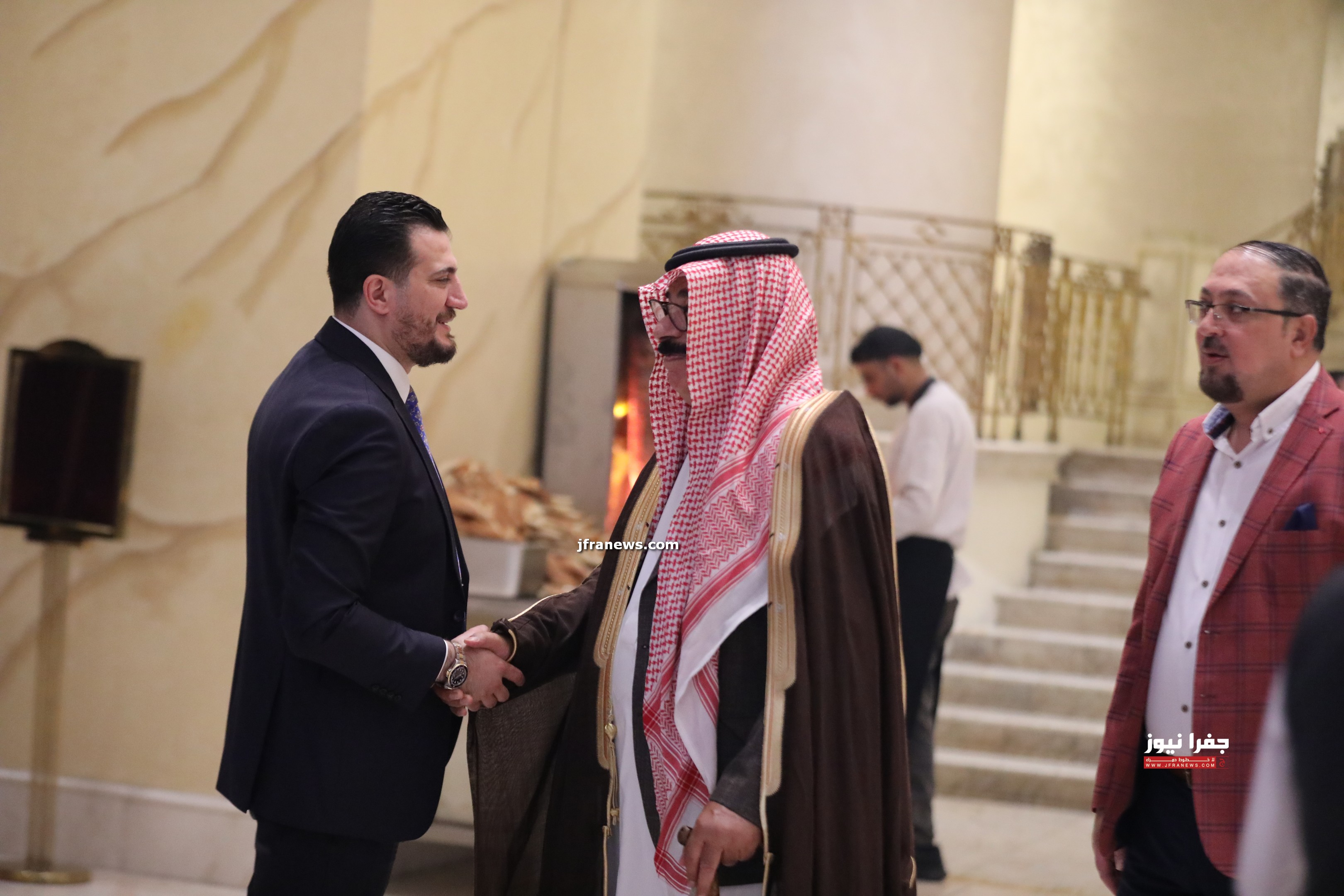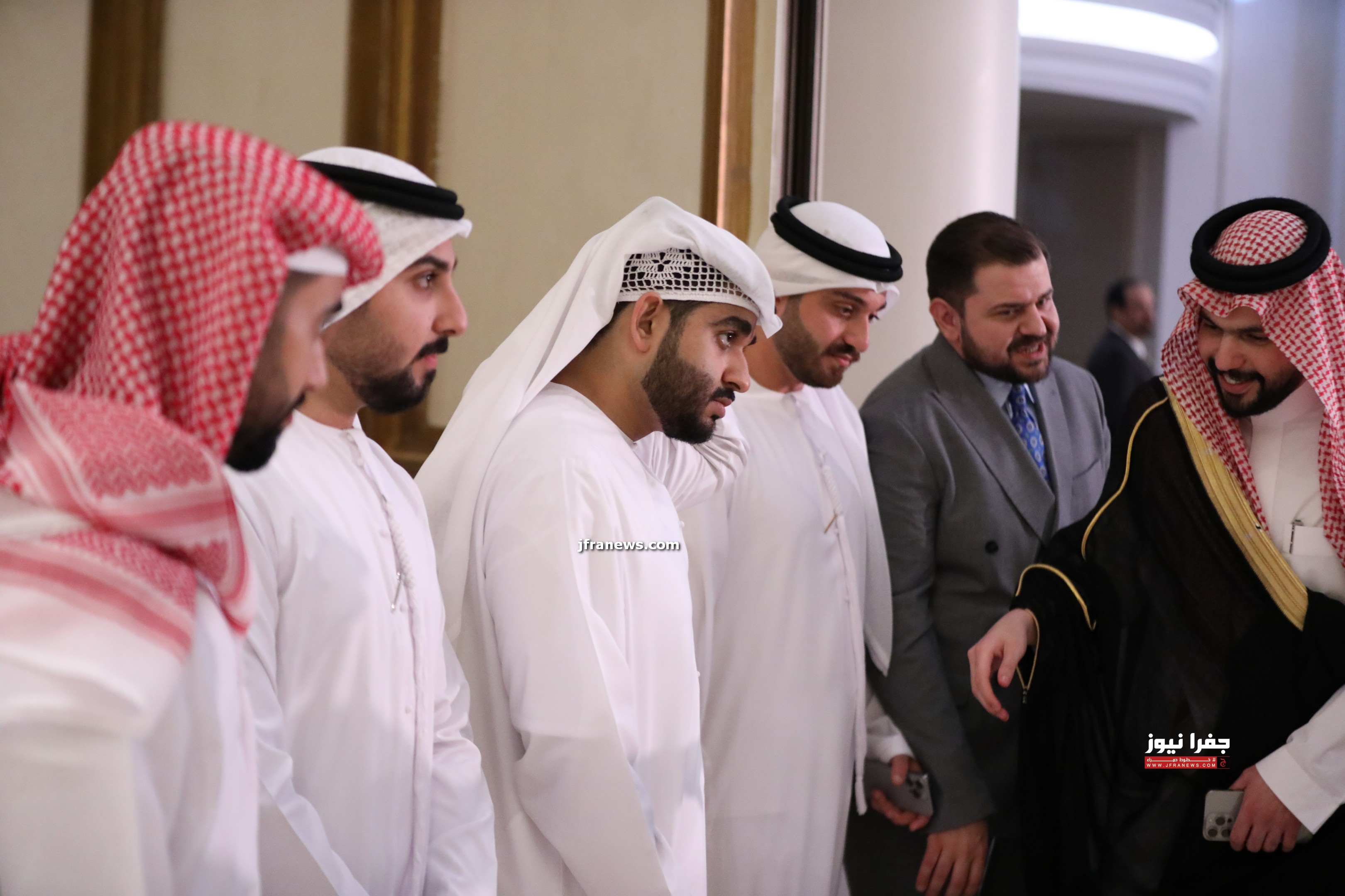 وحضر حفل الزفاف ضيوف من 20 دولة عربية وأجنبية، وجموع غفيرة من أصحاب المعالي والسعادة والعطوفة، وشيوخ ووجهاء عشائر، ولفيف من أصدقاء وأقارب ذوي العروسين .