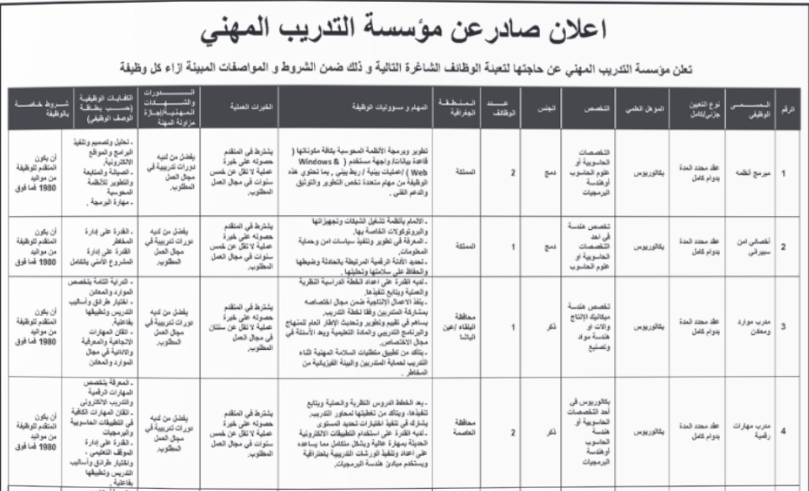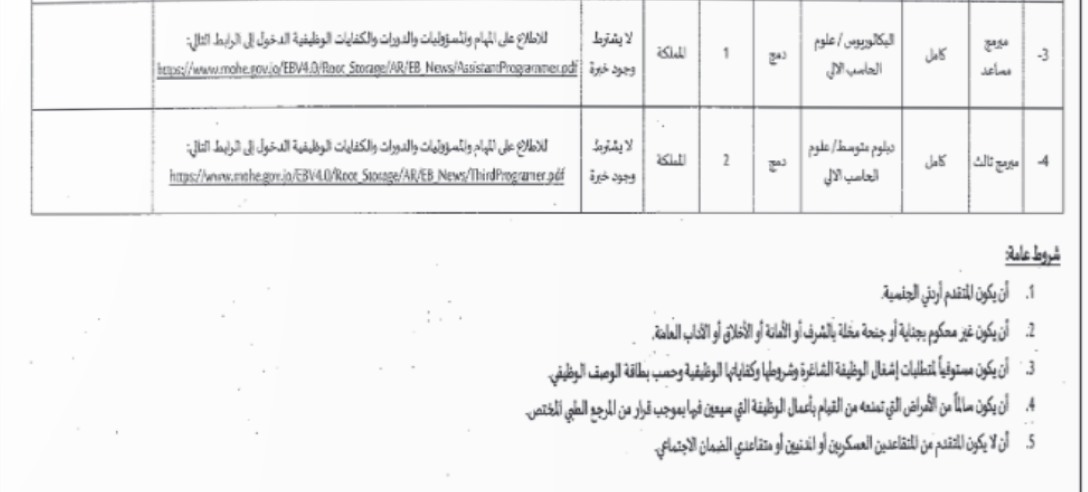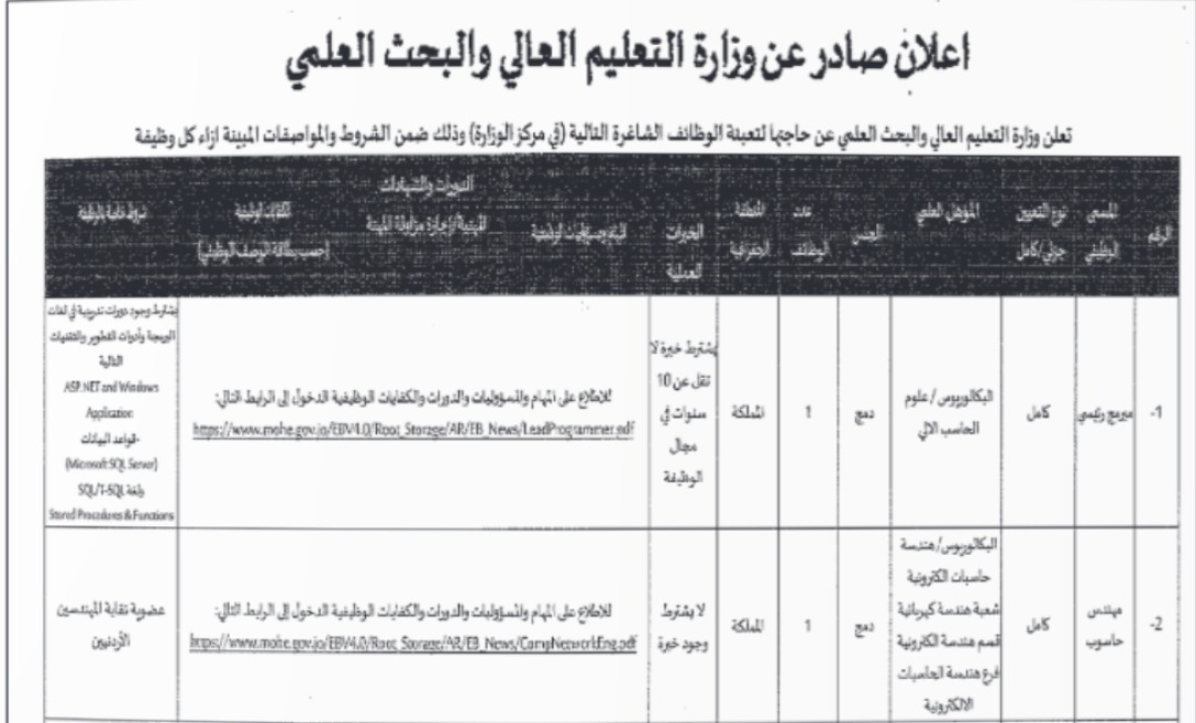 أعلنت مؤسسات حكومية اليوم الخميس عن توفر وظائف شاغرة.