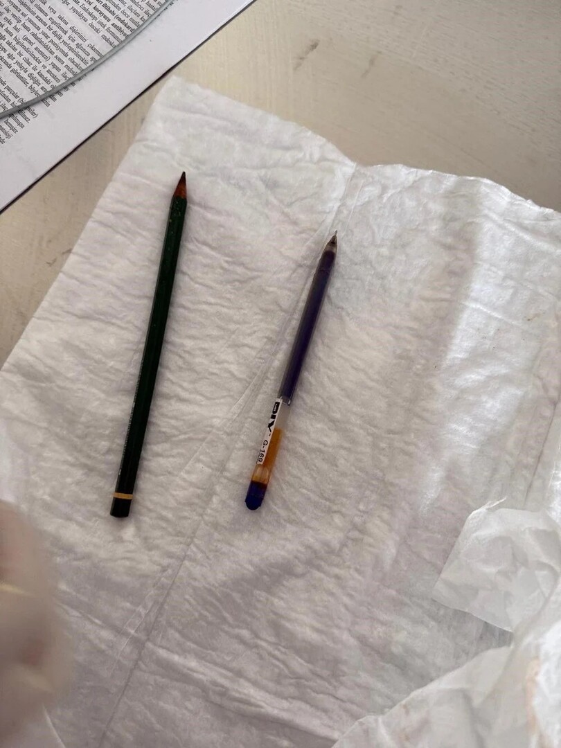 وكشفت الفحوصات الطبية عن وجود جسم غريب في معدتها، حيث أظهر التصوير المقطعي أن الجسمين هما قلم رصاص وقلم حبر جاف.