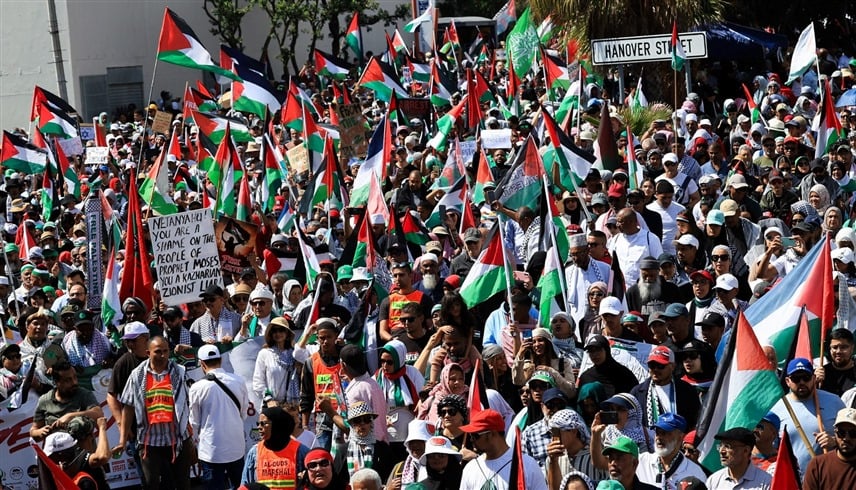 تظاهر أكثر من 3 آلاف شخص في شوارع كيب تاون، السبت، مطالبين سلطات بلادهم بقطع العلاقات التجارية والدبلوماسية مع إسرائيل، وإغلاق سفارتها، على خلفية الحرب في غزة.