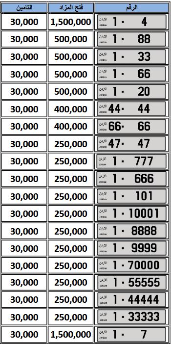 وجرى عرض الأرقام على الموقع الإلكتروني الخاص بإدارة ترخيص السواقين والمركبات (www.dvld.gov.jo) والذي يمكن من خلاله معرفة الأرقام والشروط والأحكام وقيم التأمينات والمبلغ الافتتاحي لكل رقم مميَّز، وكل ما يتعلَّق بتفاصيل المزايدة على الأرقام.