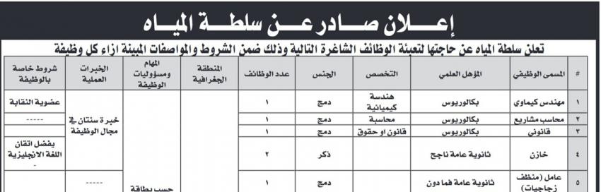 أعلنت مؤسسات حكومية عن وظائف شاغرة.