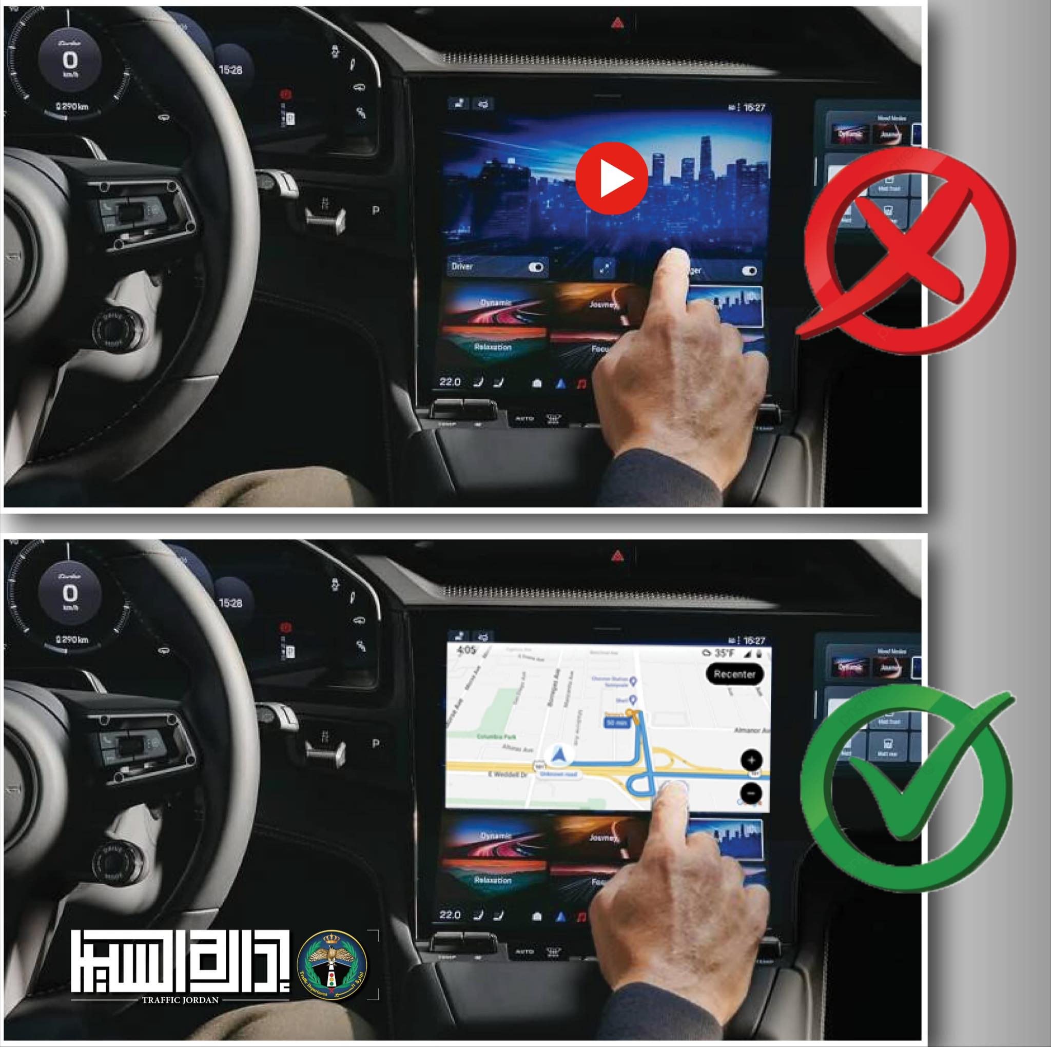 وبيّنت الإدارة أن المادة (34) من قانون السير تنص على معاقبة السائق الذي يثبت ارتكابه مخالفة "استعمال شاشات تلفزيونية داخل المركبة بشكل يسمح للسائق برؤيتها أثناء القيادة"، بغرامة مالية مقدارها 50 ديناراً.