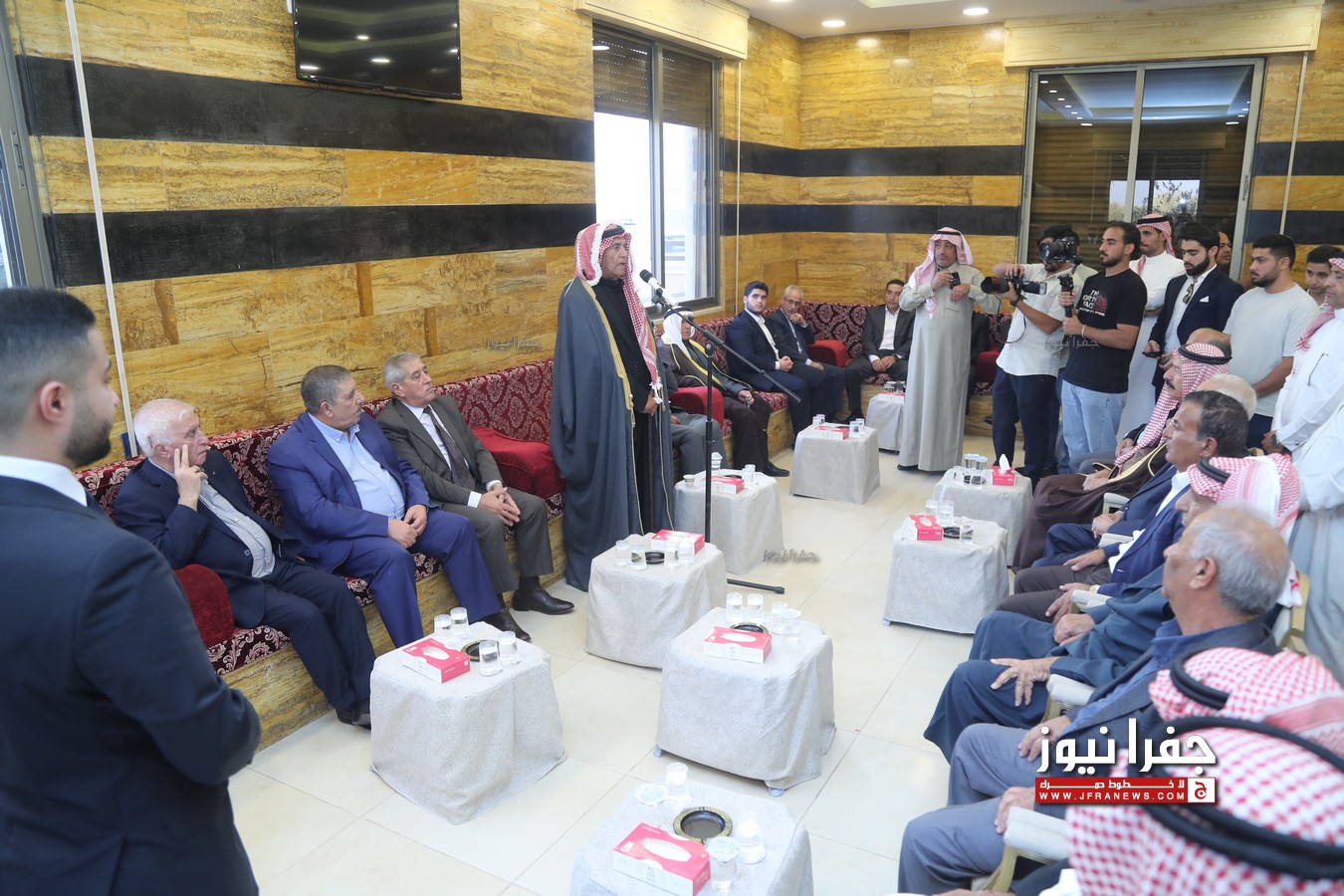 حيث ترأس الجاهة الكريمة بالطلب القاضي السابق عبدالقادر احمد عوض الطراونة , و استقبل الجاهة الكريمة النائب الأسبق غازي ابو جنيب الفايز بحضور غفير من أصحاب المعالي و العطوفة و شيوخ و وجهاء من العشائر الأردنية .