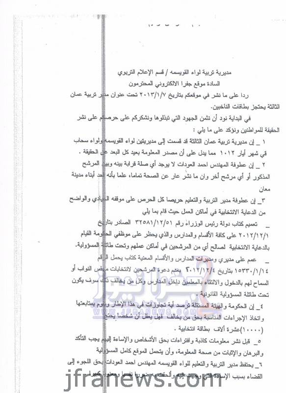 المرشحان الحديد والحنيطي يقدمان شكوى ضد مدير تربية عمان الثالثة .. والعودات يرد