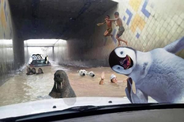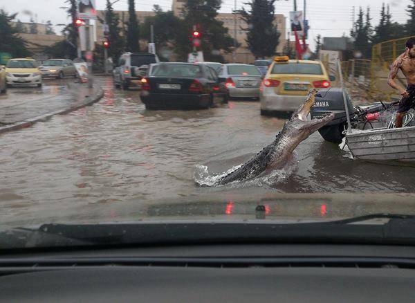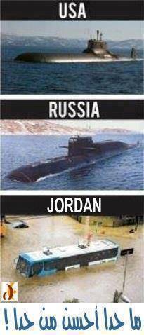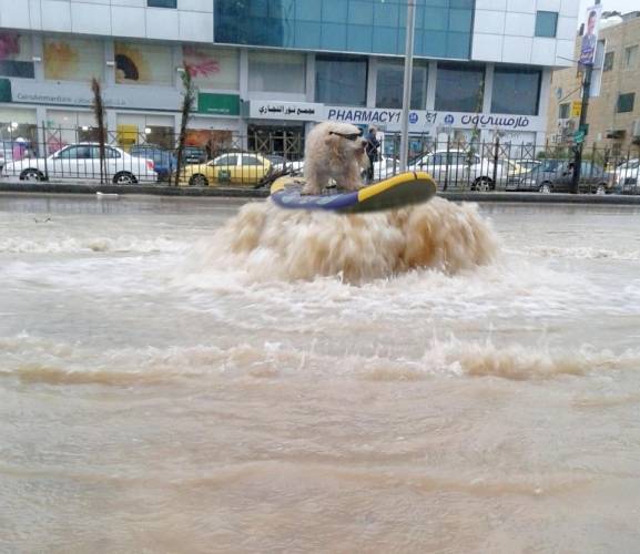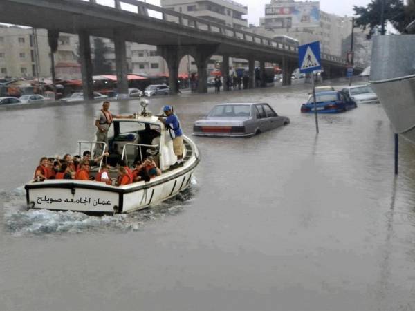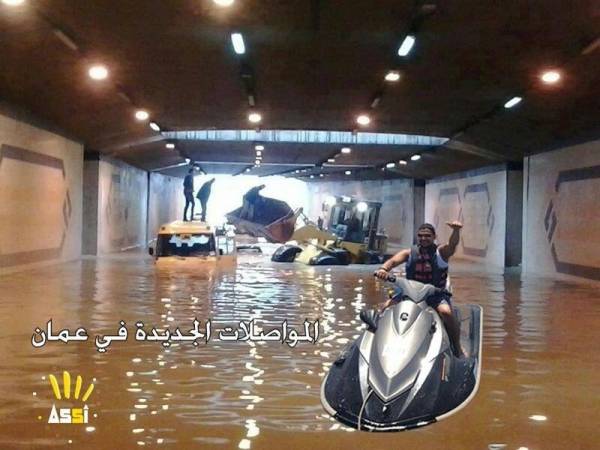تناقل مستخدمي وسائل التواصل الاجتماعي "الفيسبوك وتويتر" صورا ساخرة للمنخفض الجوي الذي كشف هشاشة البنية التحتية لشوارع عمان .