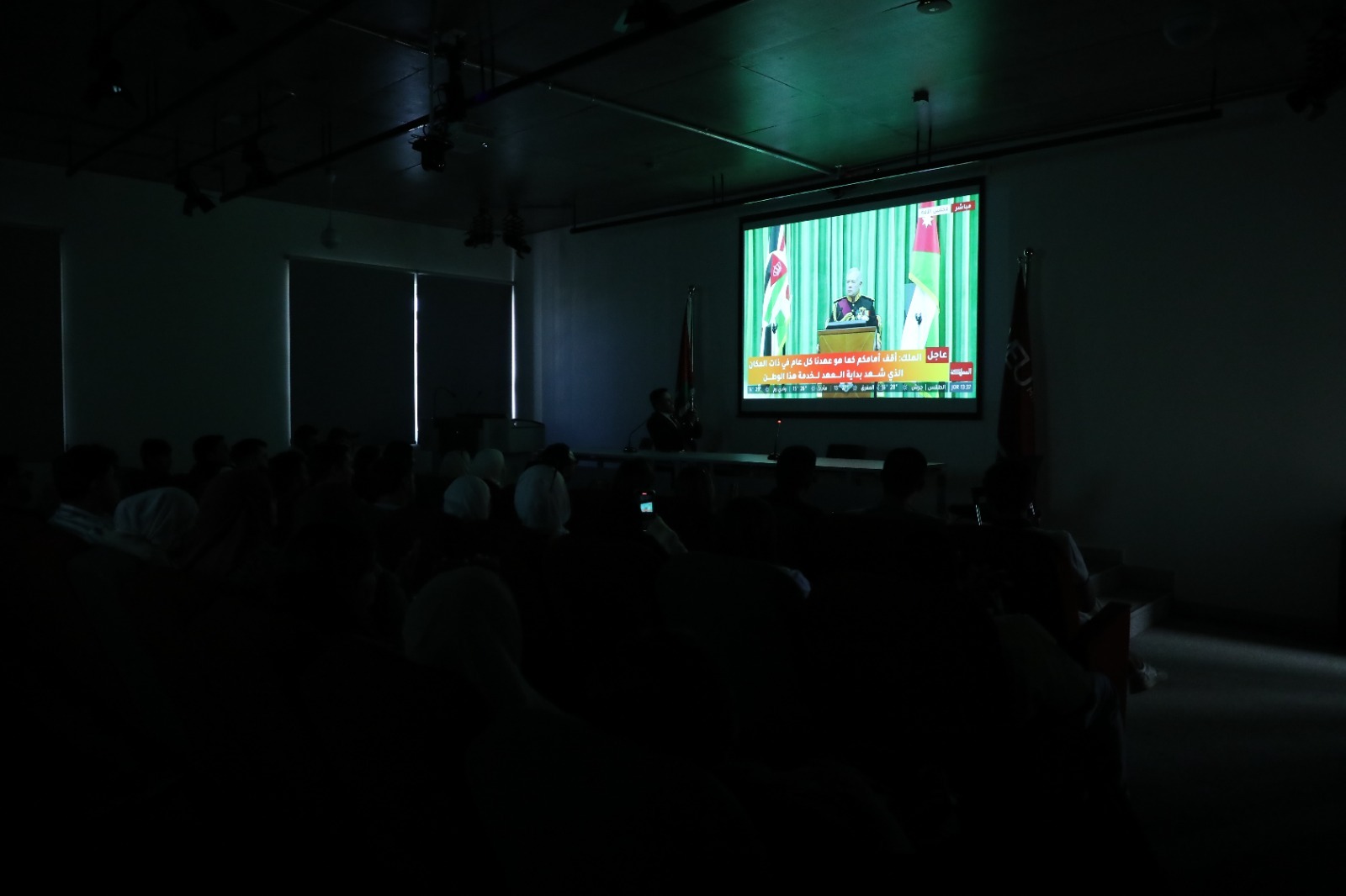 بثّت جامعة الشرق الأوسط، في مباني وكليات الجامعة كافة، خطاب العرش السامي لجلالة الملك عبدالله الثاني ابن الحسين المعظم، الذي ألقاه بمناسبة افتتاح الدورة العادية لمجلس الأمة العشرون، حيث ناقش طلبة الجامعة وأعضاء هيئتيها التدريسية والإدارية أبرز مضامين الخطاب ودلالاته الوطنية، والسياسية، والقيادية.