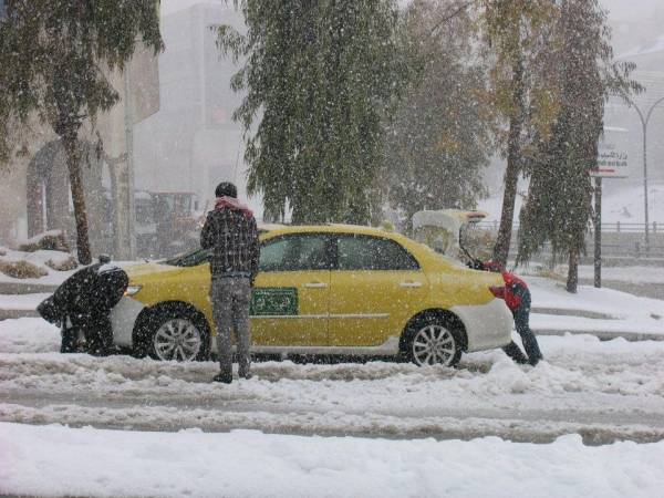 تزينت العاصمة عمان ومحافظات الشمال والجنوب بالوشاح الابيض, مما تسبب باغلاقات لعدة طرق في اغلب المحافظات ومناطق العاصمة عمان .