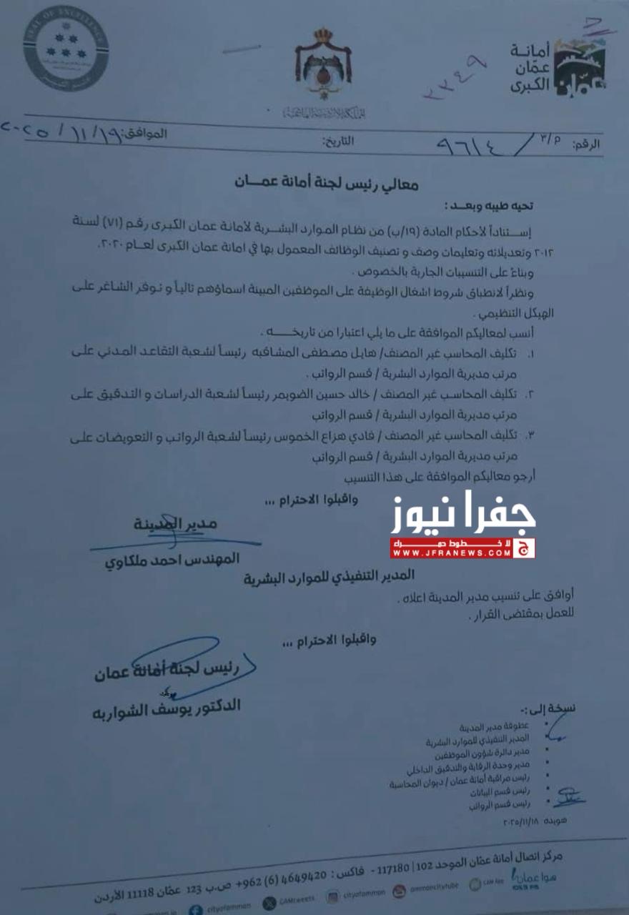 وافق رئيس لجنة أمانة عمّان الكبرى الدكتور يوسف الشواربة، اليوم الأربعاء، على إجراء تشكيلات إدارية في الأمانة؛ شملت رؤساء شعب.