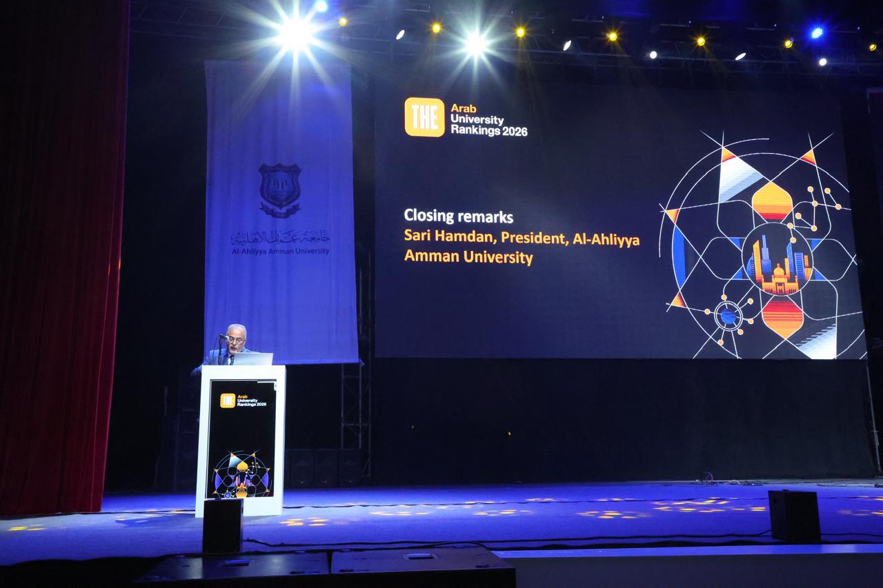 •وخلال حفل الختام، عبّر الأستاذ الدكتور ساري حمدان، رئيس جامعة عمّان الأهلية، عن اعتزازه بالنتائج التي حققتها الجامعة في التصنيف ، موجّهًا الشكر لجميع المشاركين ومهنئًا الجامعات التي ظهرت ضمن التصنيف.