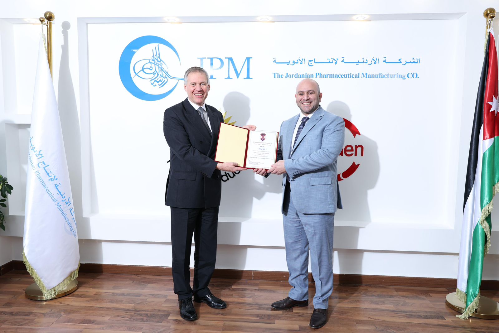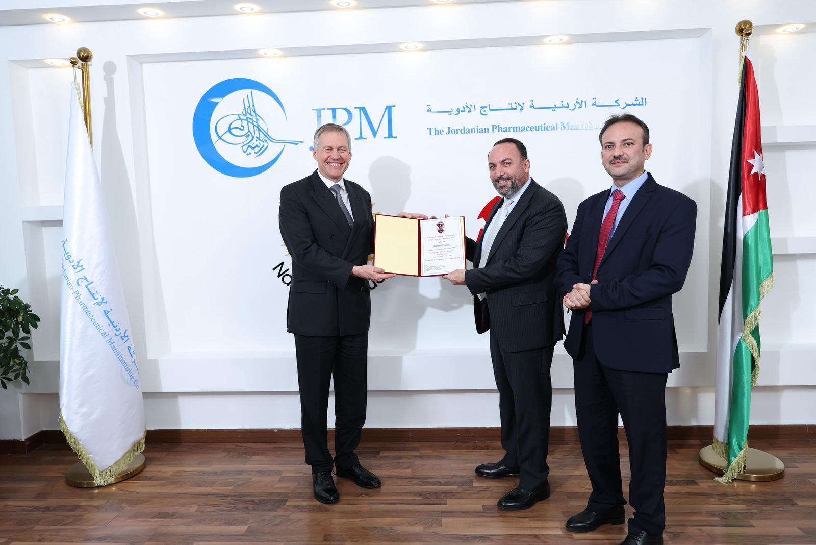استقبلت الشركة الأردنية لإنتاج الأدوية (JPM) وفدًا رسميًا ضمّ سعادة السفير البريطاني في الأردن فيليب هول، وبمشاركة ممثل الجامعة الهاشمية الدكتور مهند عودة والدكتور خليل يوسف، وذلك في إطار برنامج تطوير القيادات وتمكين الكفاءات في الشركة.